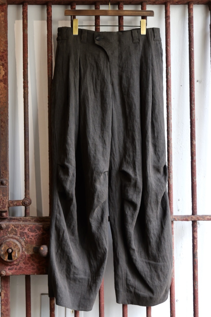 PTJ-DWSK. Classic Straight Pants Linen Washi (Japanese Paper). Slate Gray. DEVOA.