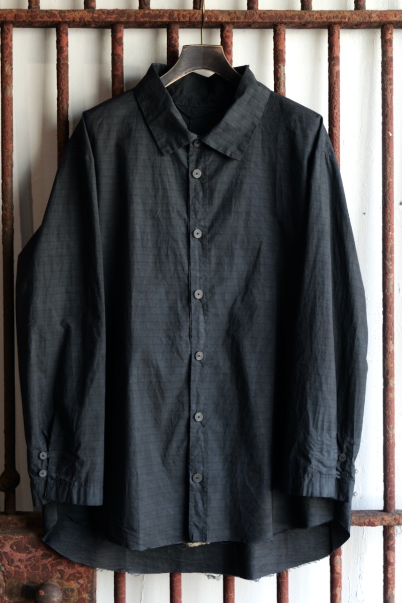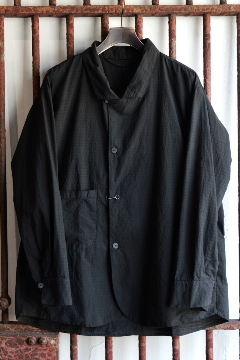 E26-21. Checkered Linen Shirt Jacket Over Dyed. Hand Dyed. atelier suppan.