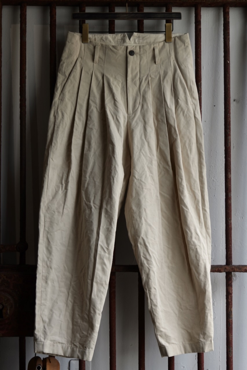 PANTS055. Triple Pleated Wide Nanako Cloth(Canvas). Light Beige. Collection 006. calmlence.