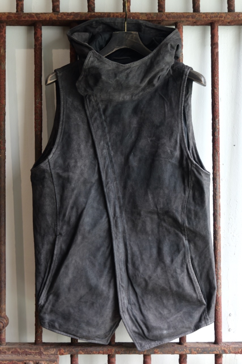 11V-2317. HORSE LEATHER HI NECK HOODED ZIP FRONT VEST LINED HV-2. 82NR(Gray Reverse). incarnation.