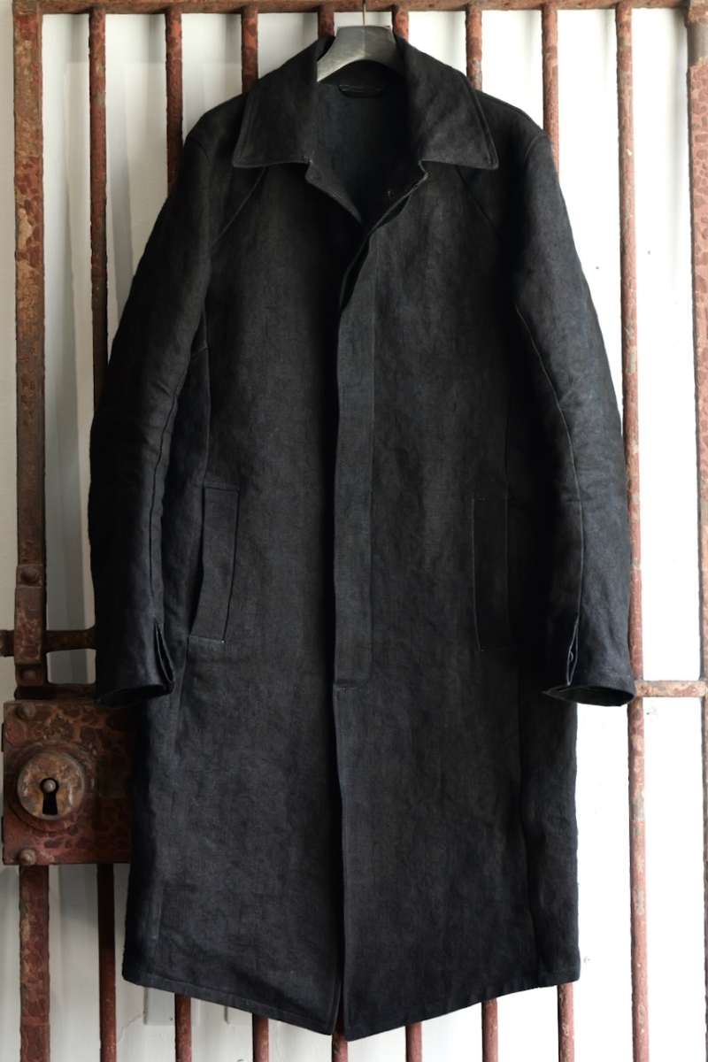 71-5440【sizeS】. 1950's VINTAGE LINEN 100% MAC COAT UNLINED. T91(BLACK). incarnation.