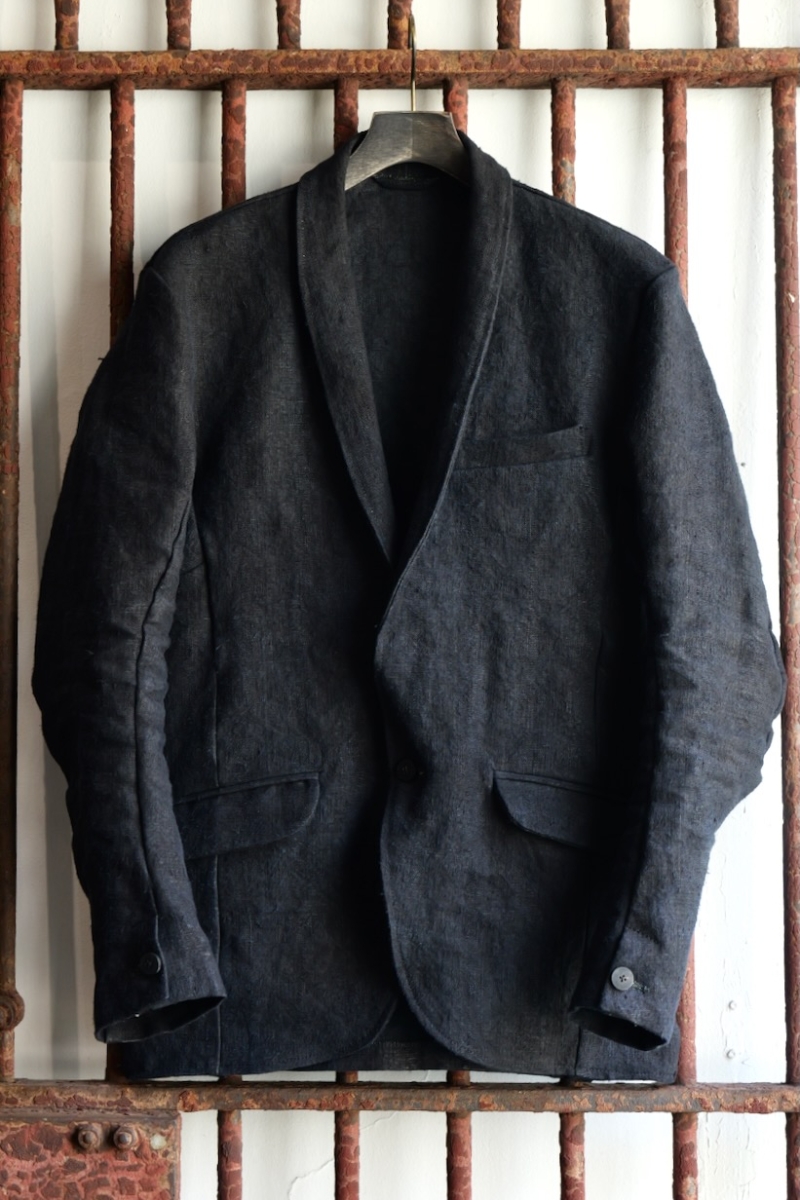 71-1250. 1950's VINTAGE LINEN 100% SHOWL COLLAR JACKET UNLINED JJK-4. T91(BLACK). incarnation.