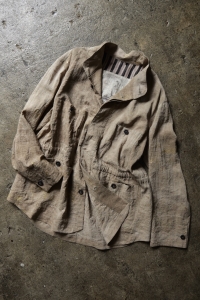 JACKET046. Military Jacket 80/1 Linen Houndstooth Cloth. Beige × Dark Khaki. Collection 006. calmlence.