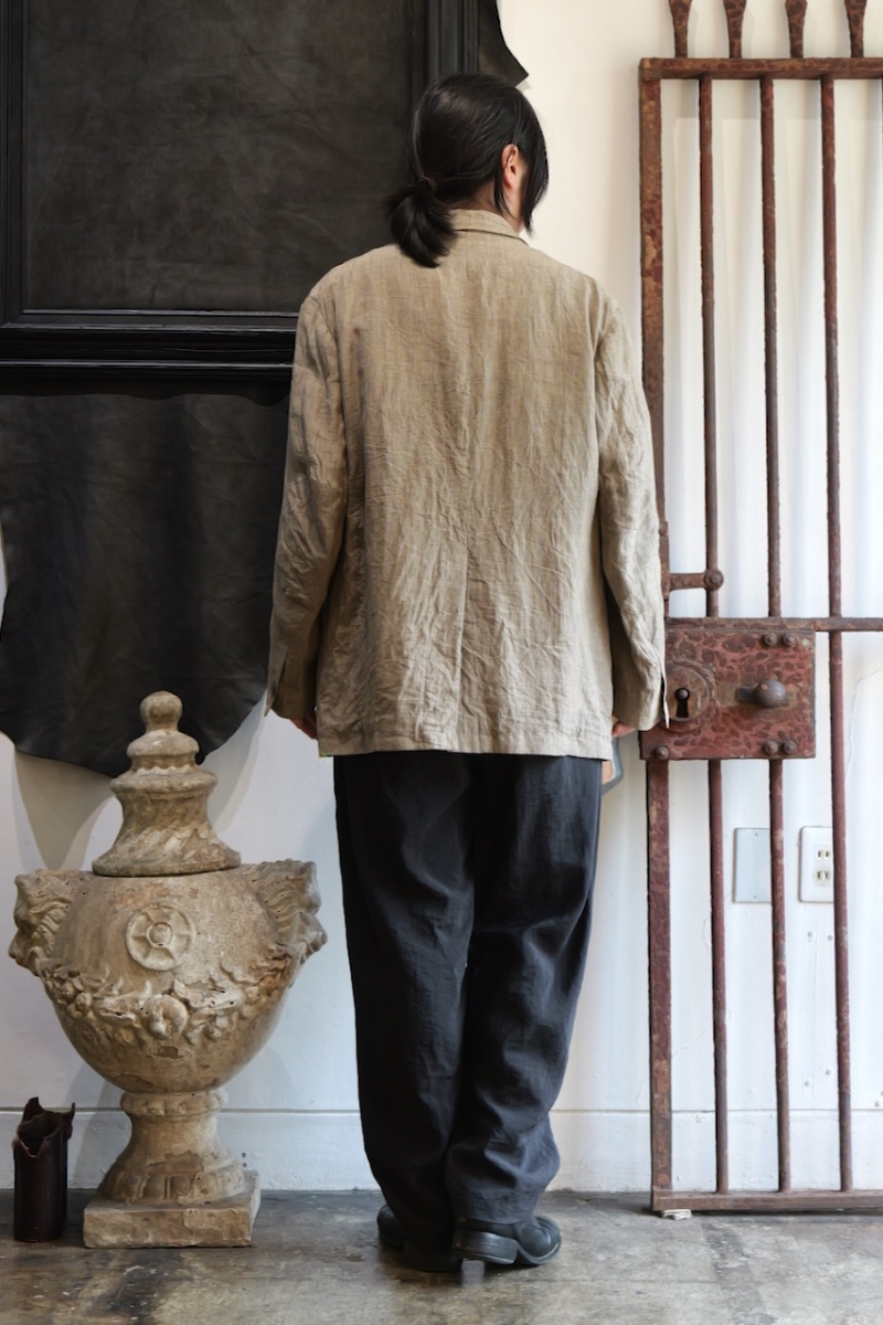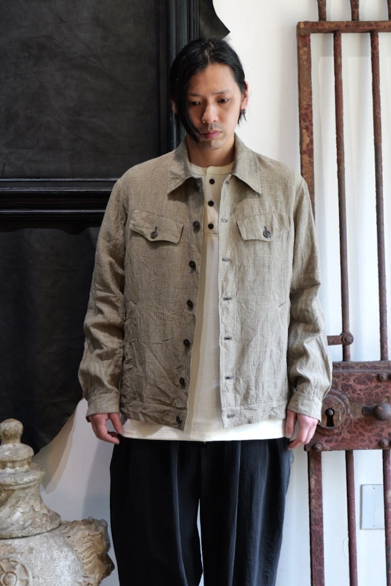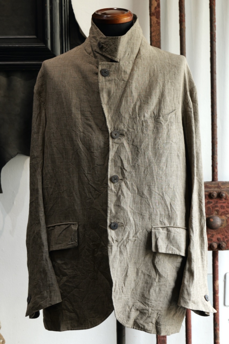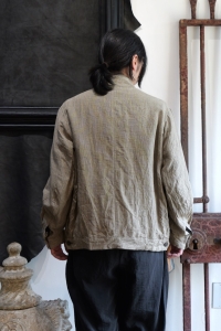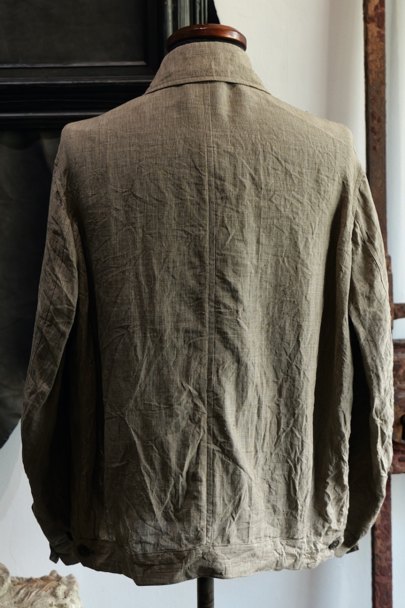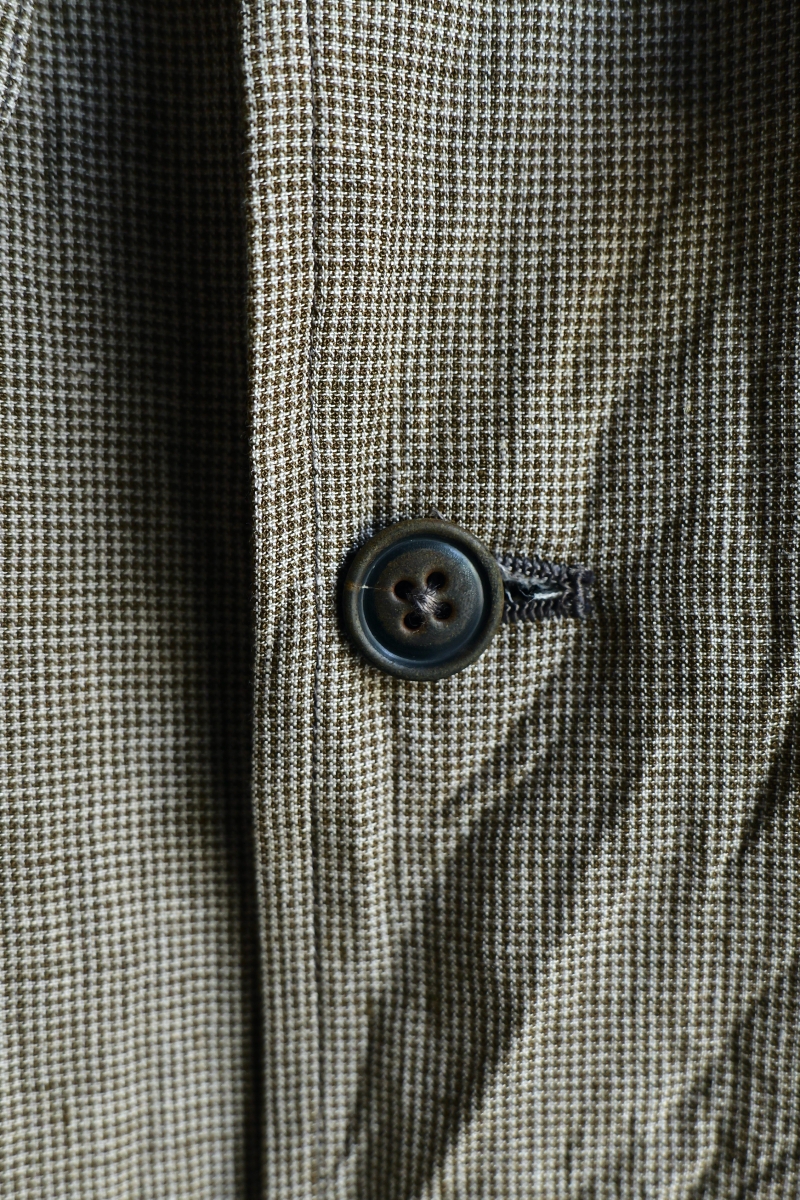 JACKET046. Military Jacket 80/1 Linen Houndstooth Cloth. Beige × Dark Khaki. Collection 006. calmlence.