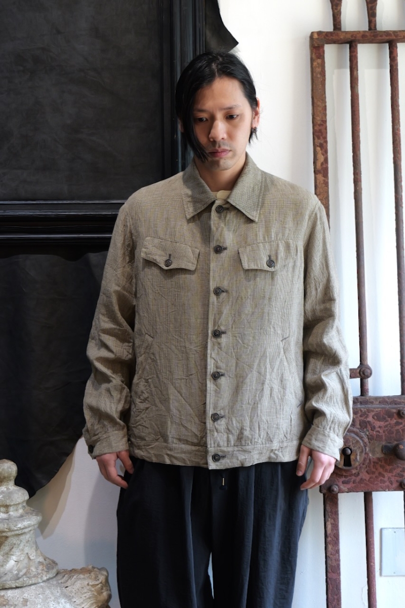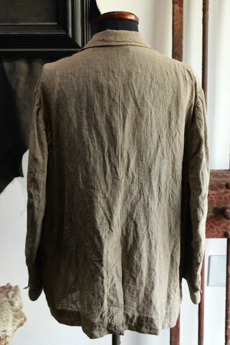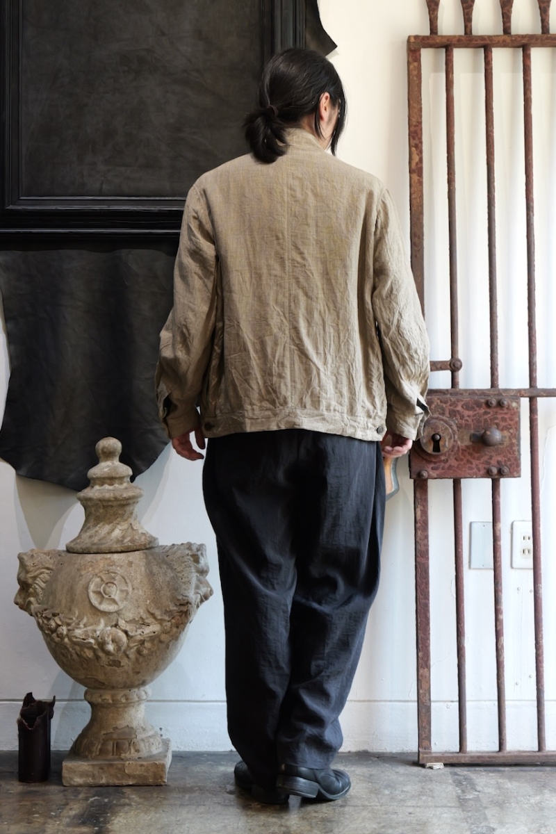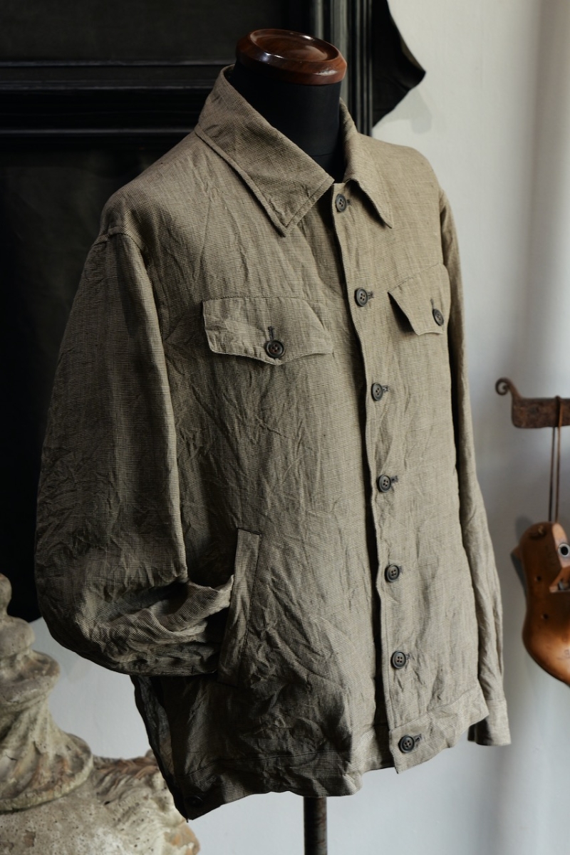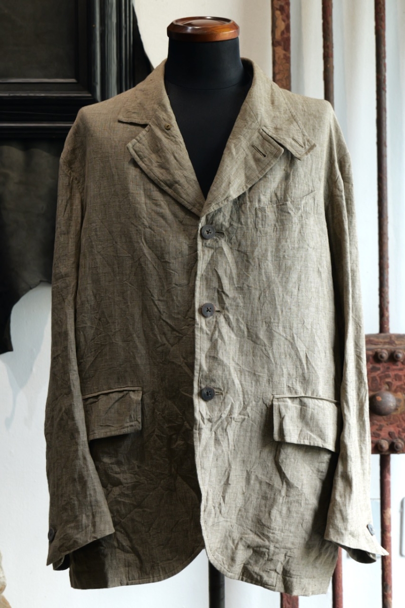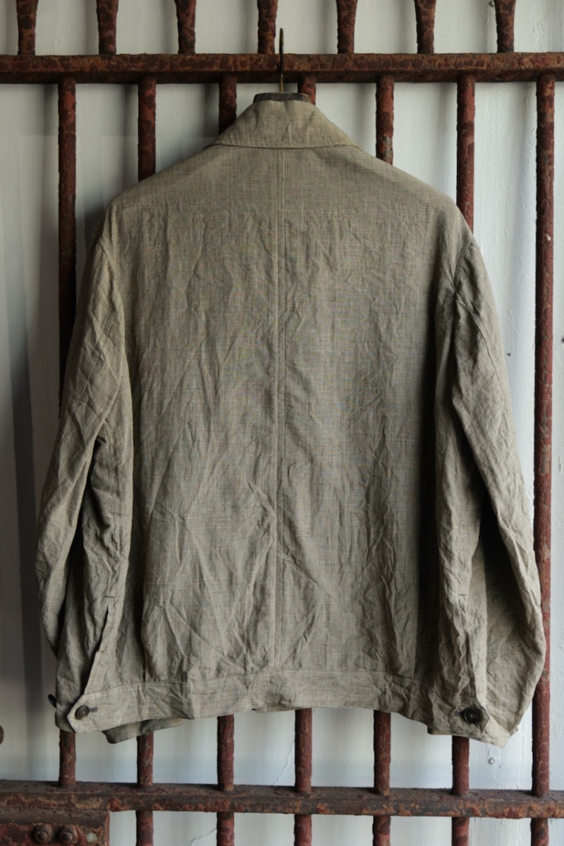 JACKET046. Military Jacket 80/1 Linen Houndstooth Cloth. Beige × Dark Khaki. Collection 006. calmlence.