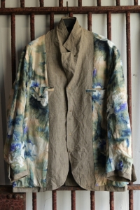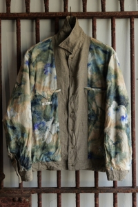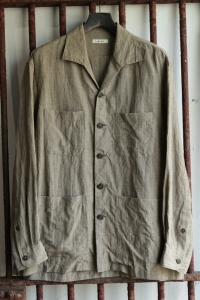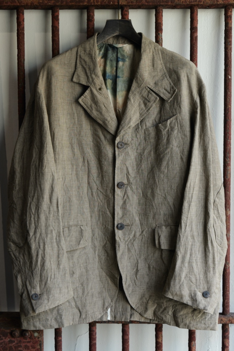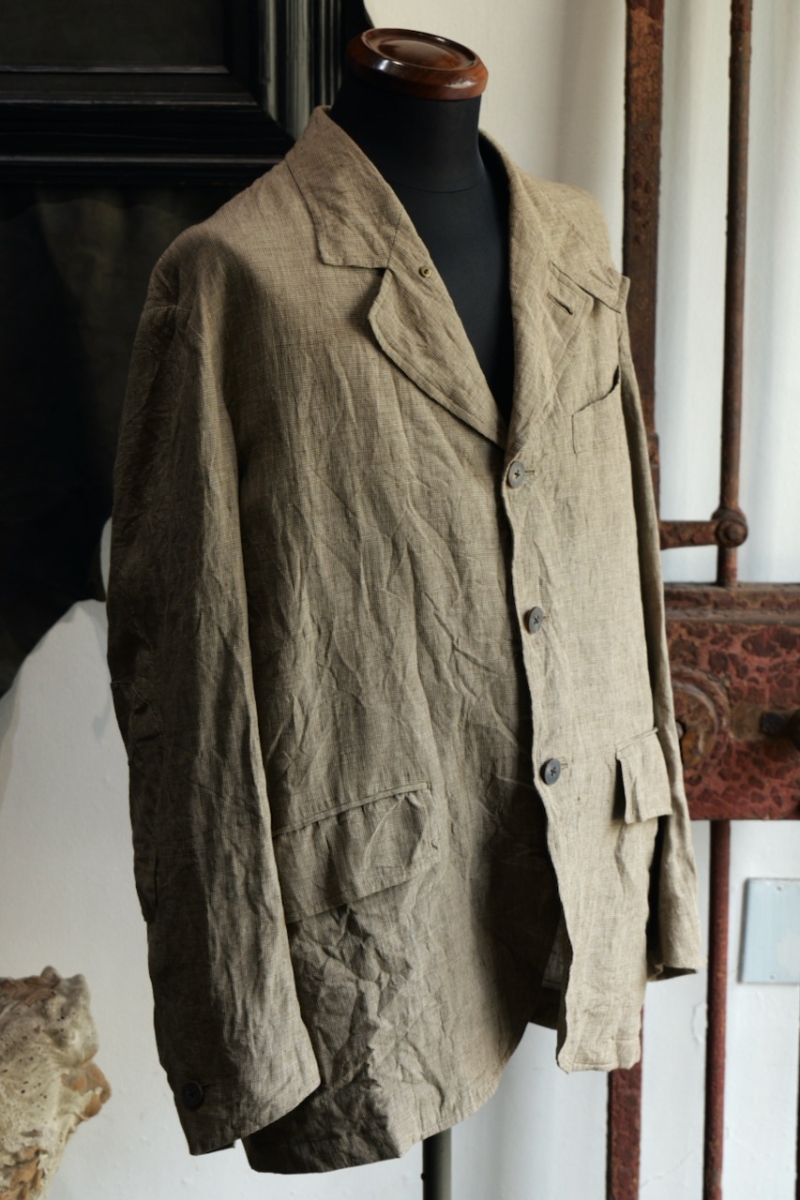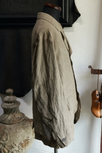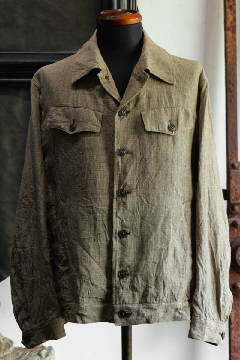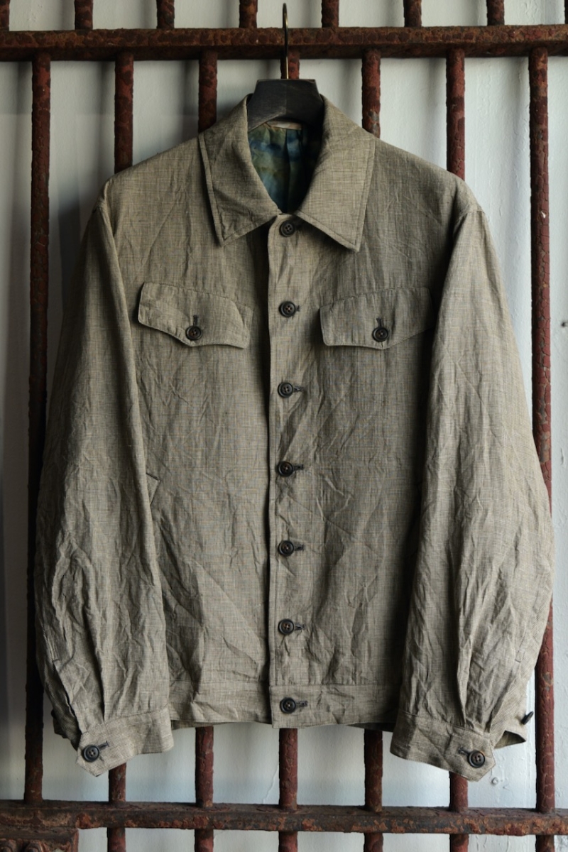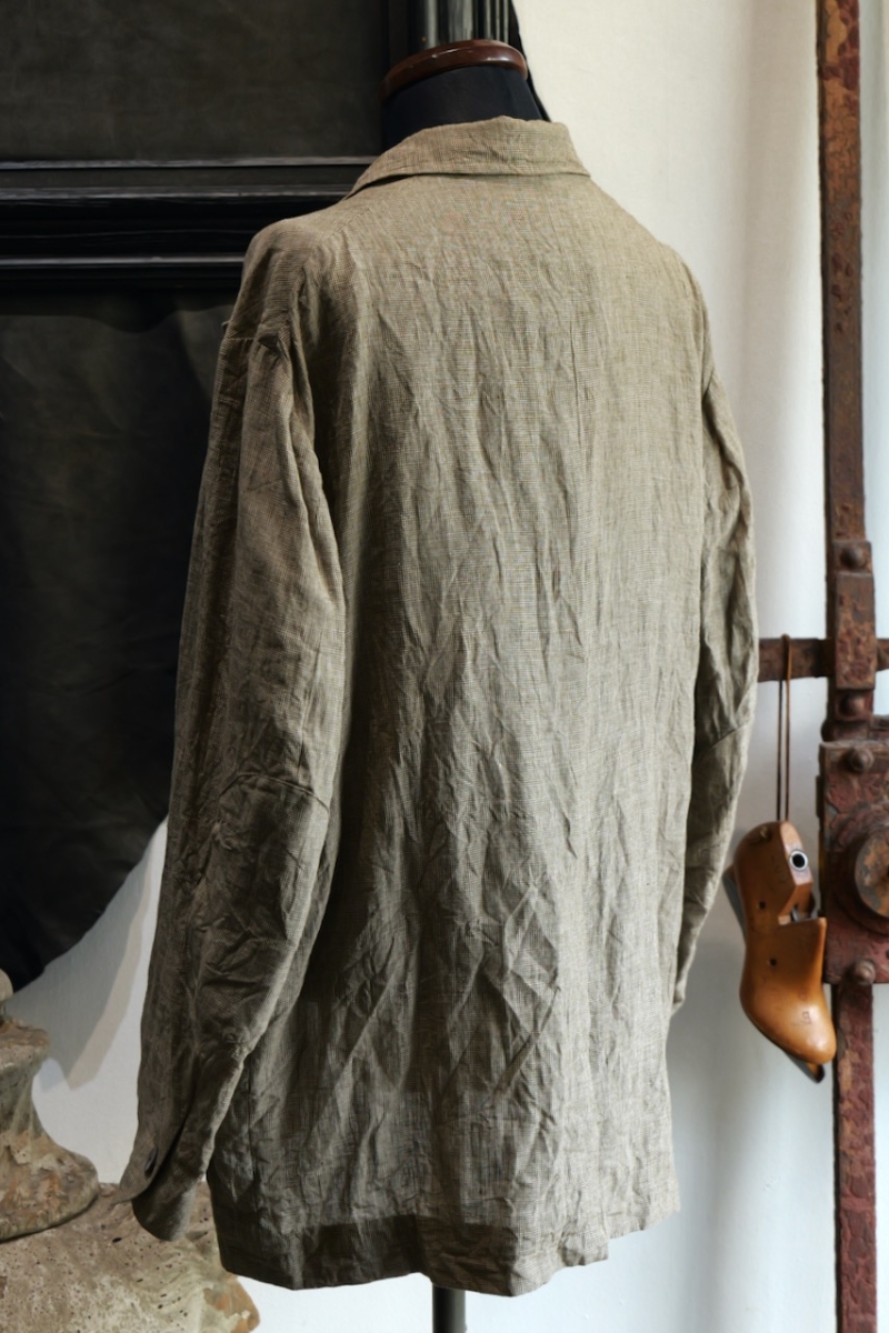 JACKET046. Military Jacket 80/1 Linen Houndstooth Cloth. Beige × Dark Khaki. Collection 006. calmlence.