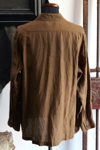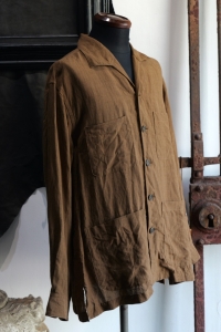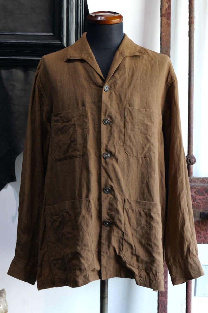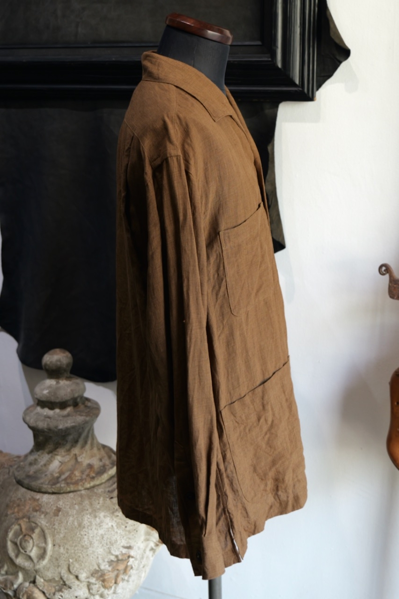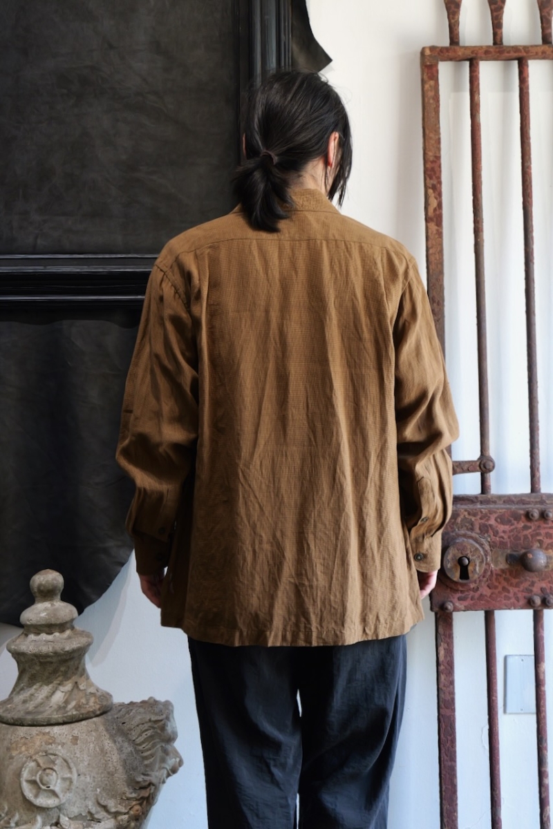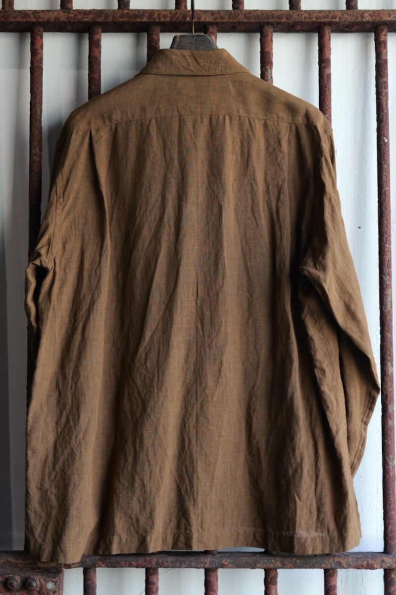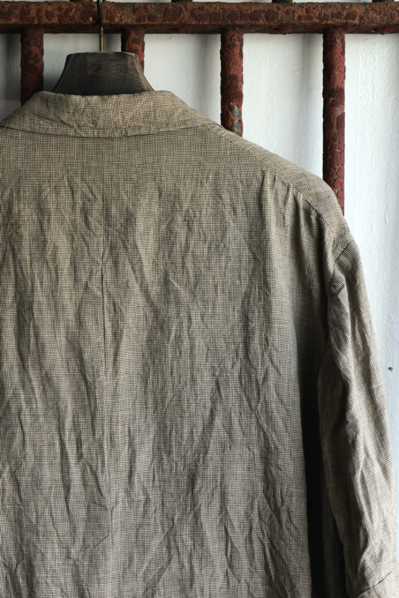 SHIRT045. Shirt Jacket 80/1 Linen Houndstooth Cloth. Khaki × Dark Khaki. Collection 006. calmlence.