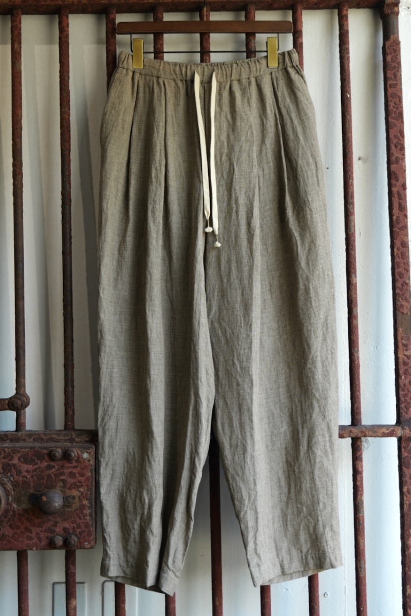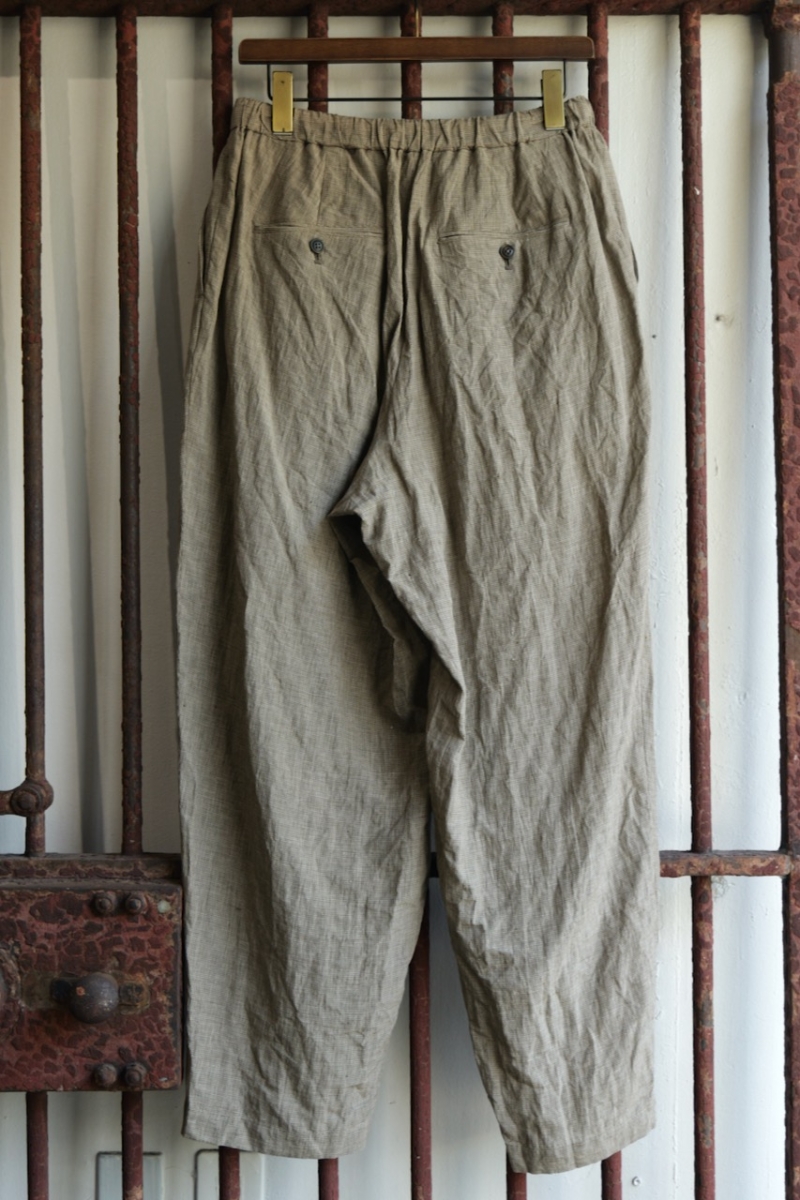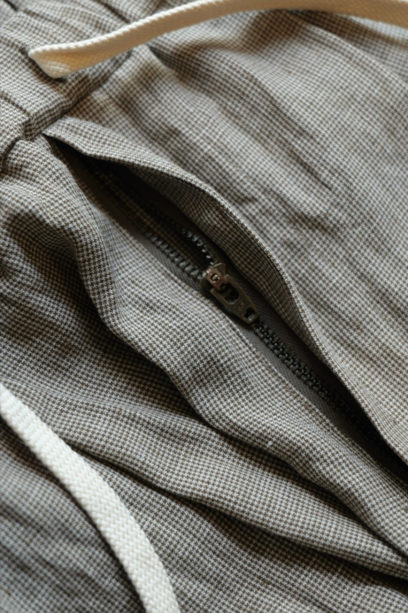 PANTS046. Double Pleated Easy Tapered 80/1 Linen Houndstooth Cloth. Beige × Dark Khaki. Collection 006. calmlence.