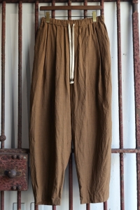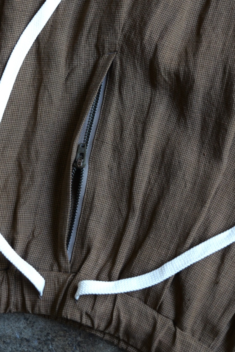 PANTS046. Double Pleated Easy Tapered 80/1 Linen Houndstooth Cloth. Khaki × Dark Khaki. Collection 006. calmlence.