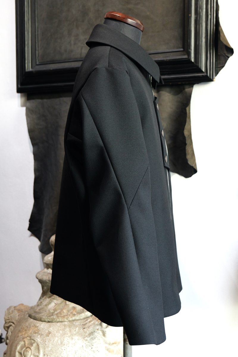 お好みに合わせて襟を立てての着用も可能です。