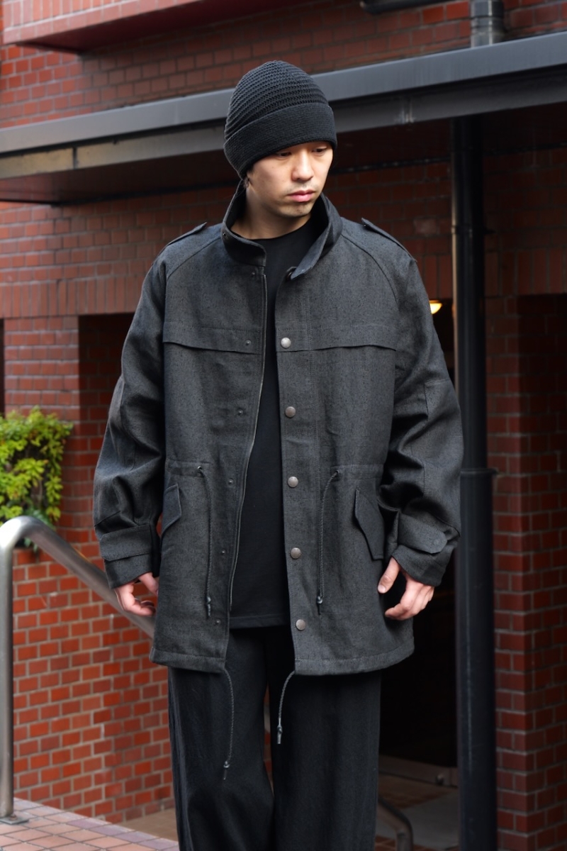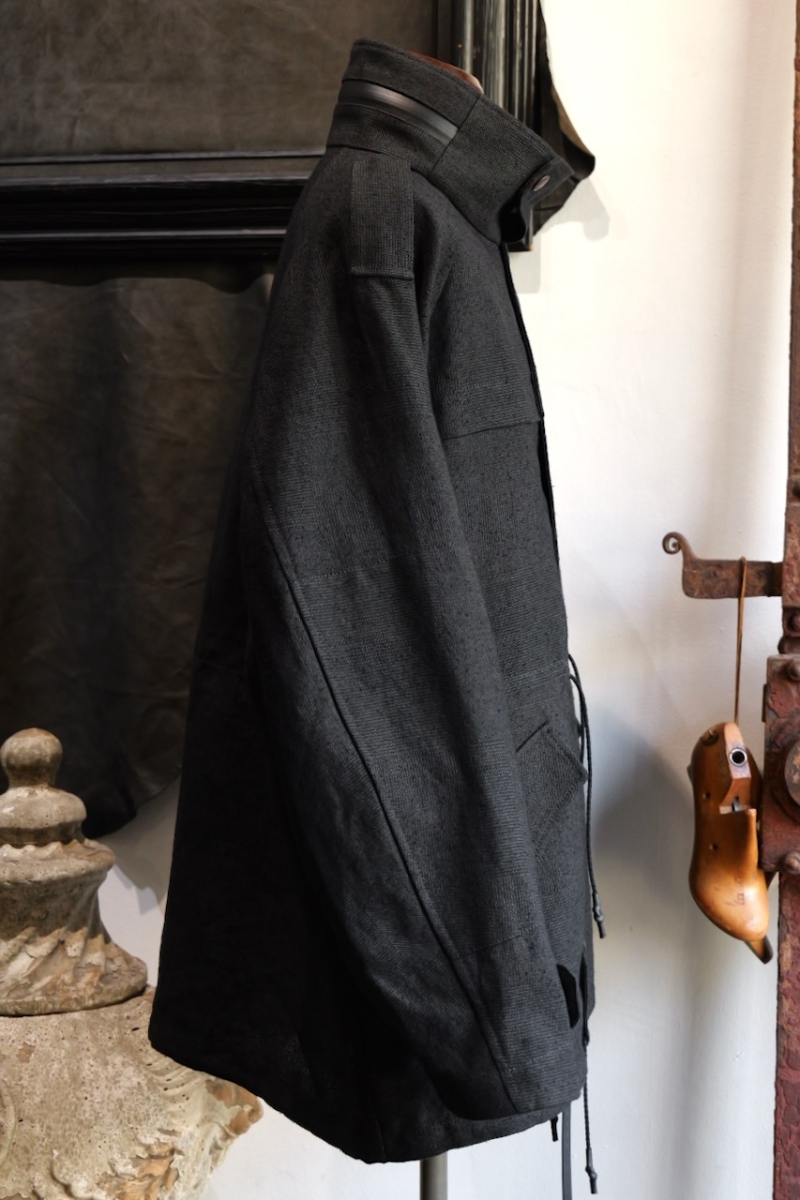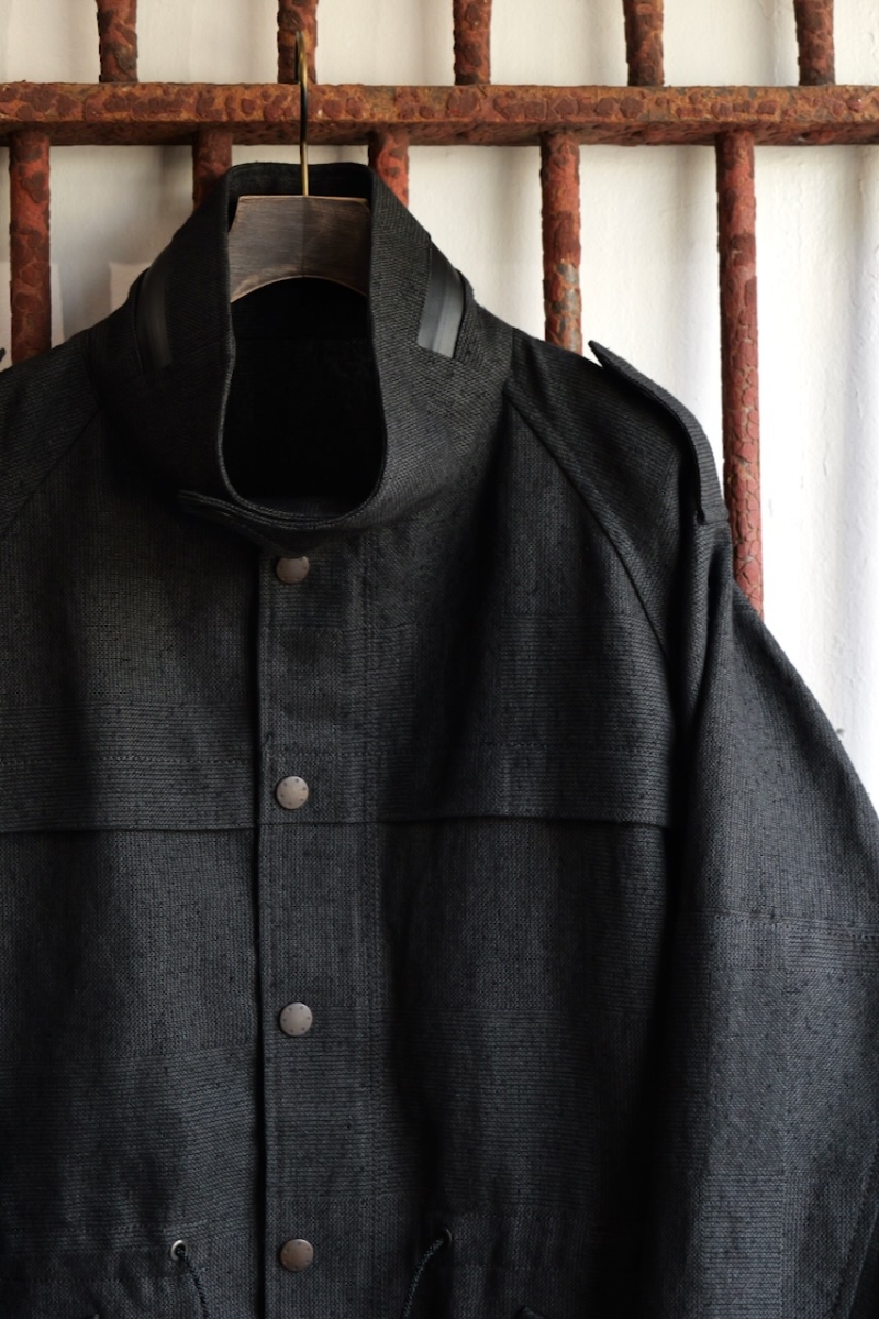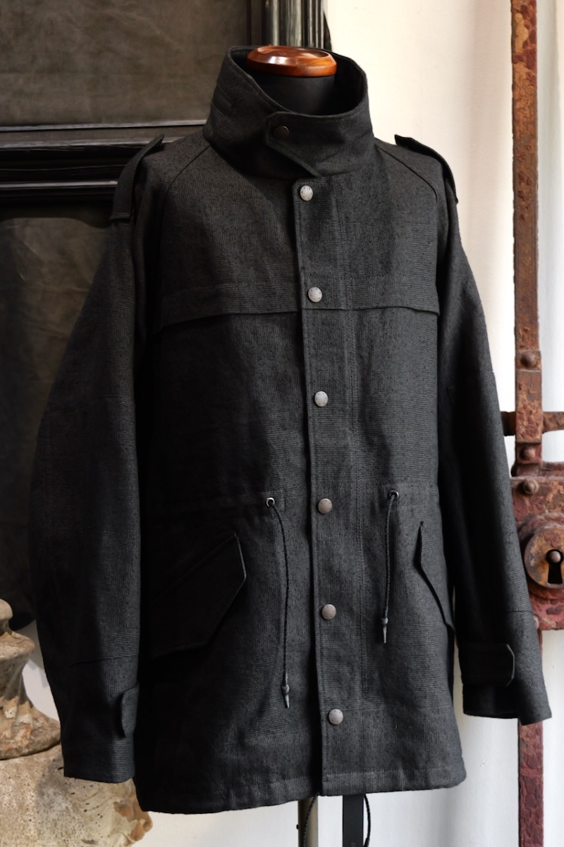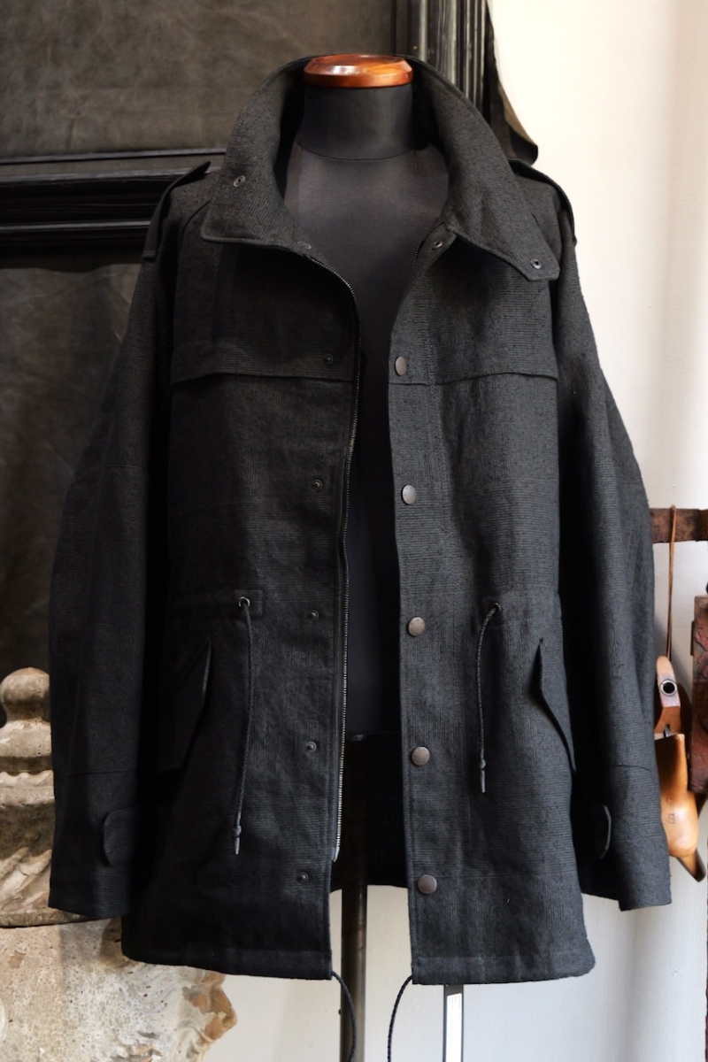 JKI-SPD65. Field Jacket Silk Washi (Japanese Paper). Black. DEVOA.