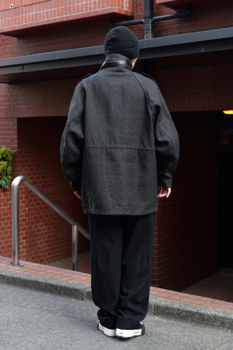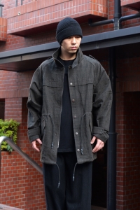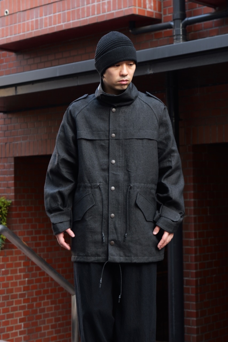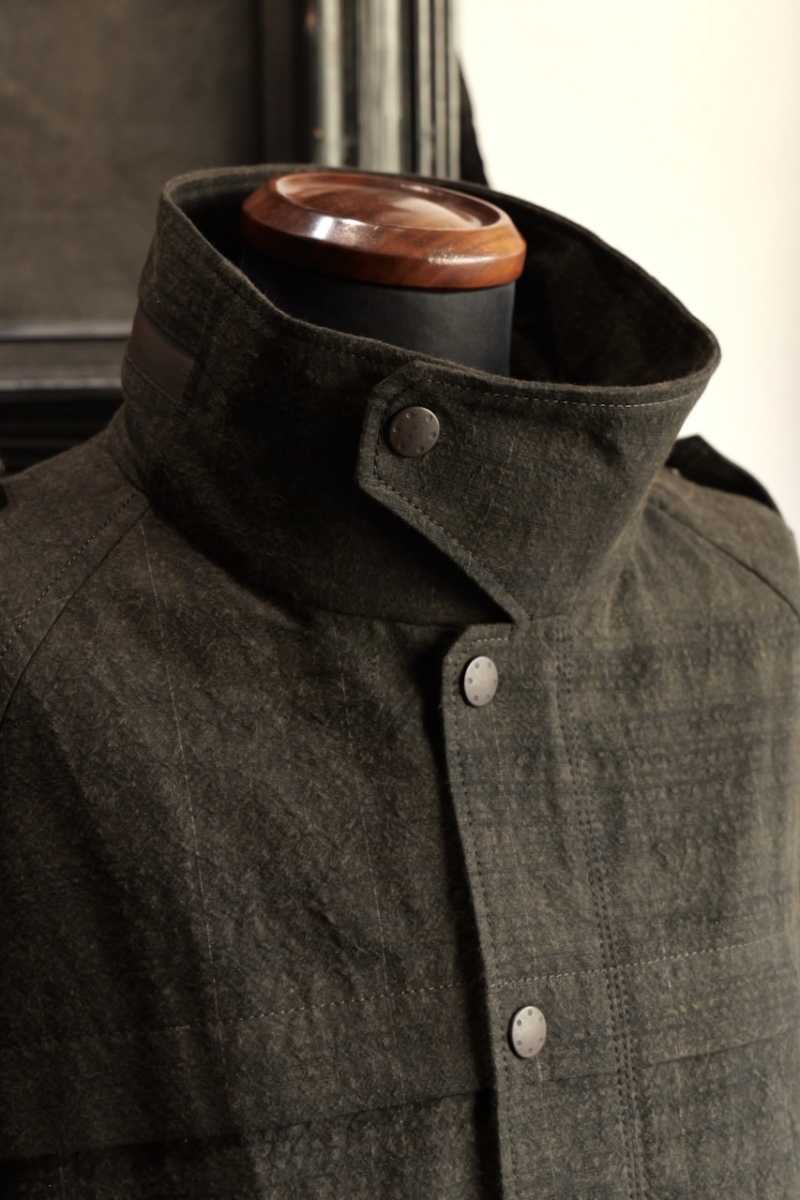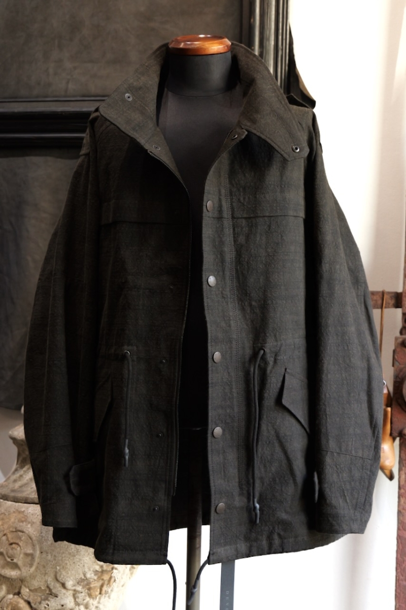 JKI-SPD65. Field Jacket Silk Washi (Japanese Paper). Black. DEVOA.