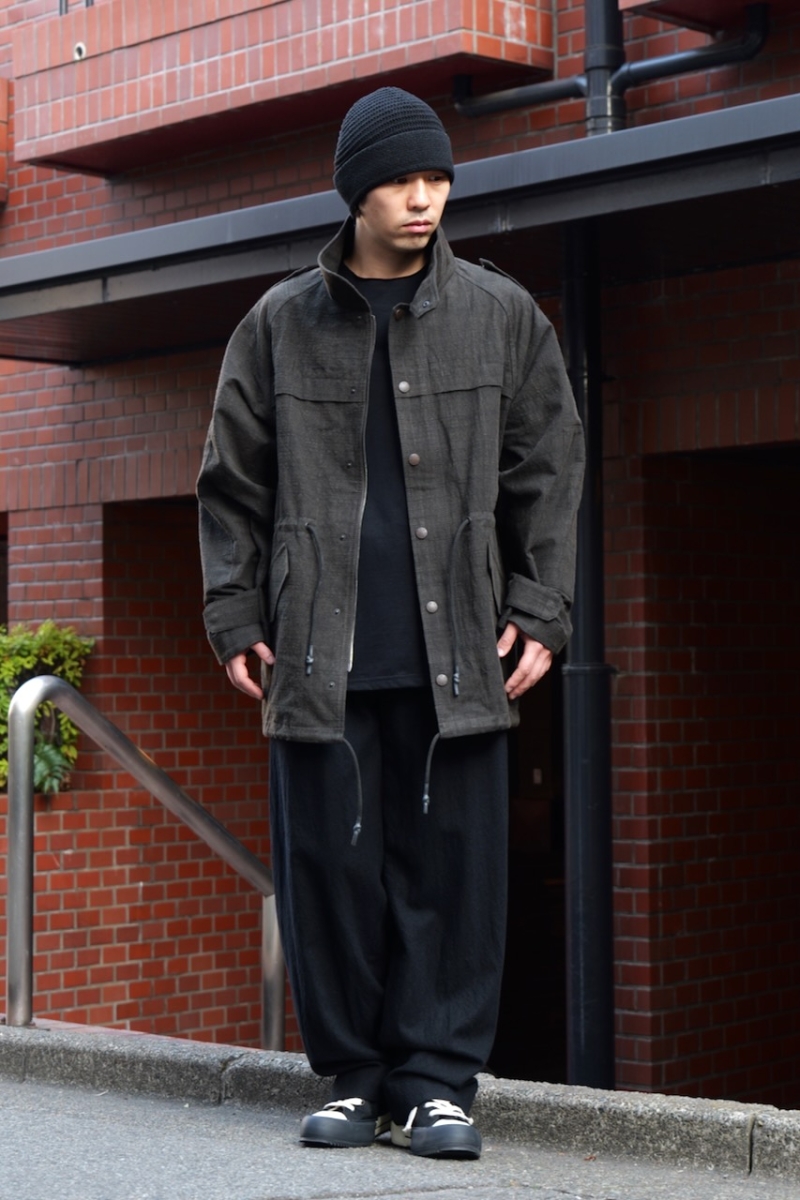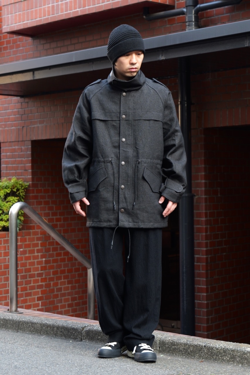 ミリタリー由来の生地を、最上級のクオリティへと引き上げたような印象です。