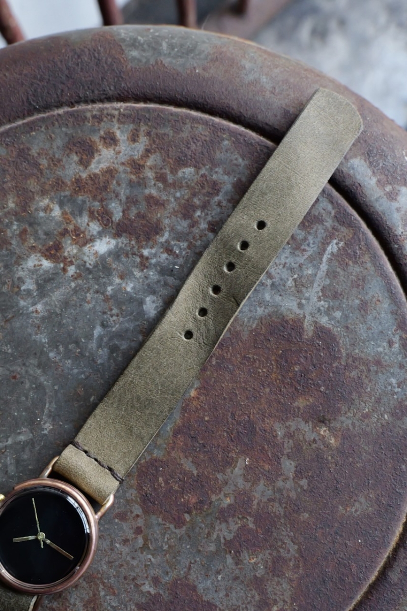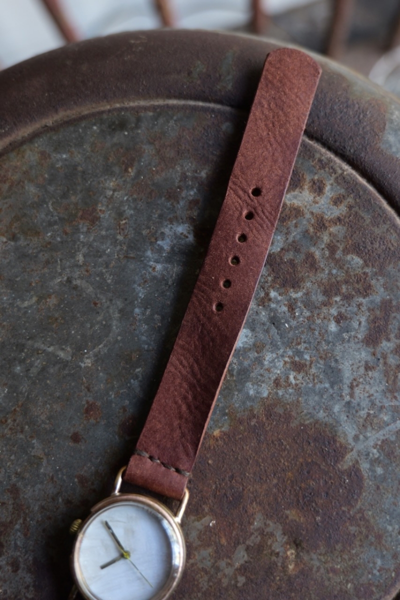 ベルトには、イタリアのPueblo Leatherのショルダー部分を使用。