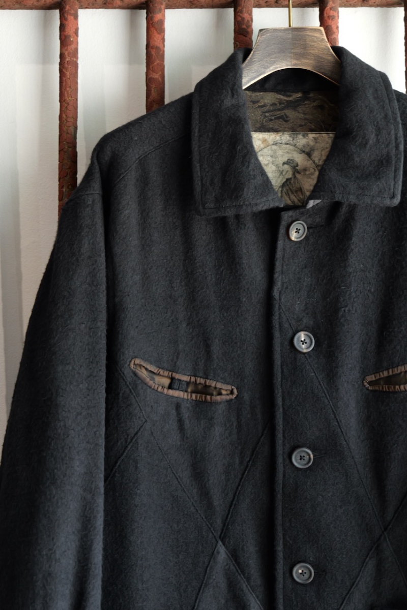 デザインはダイヤモンド型のパッチワークが特徴のシャツカラージャケット。