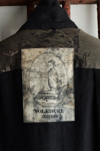 袖裏にはオーバーダイ加工の施された綿キュプラストライプ生地と、