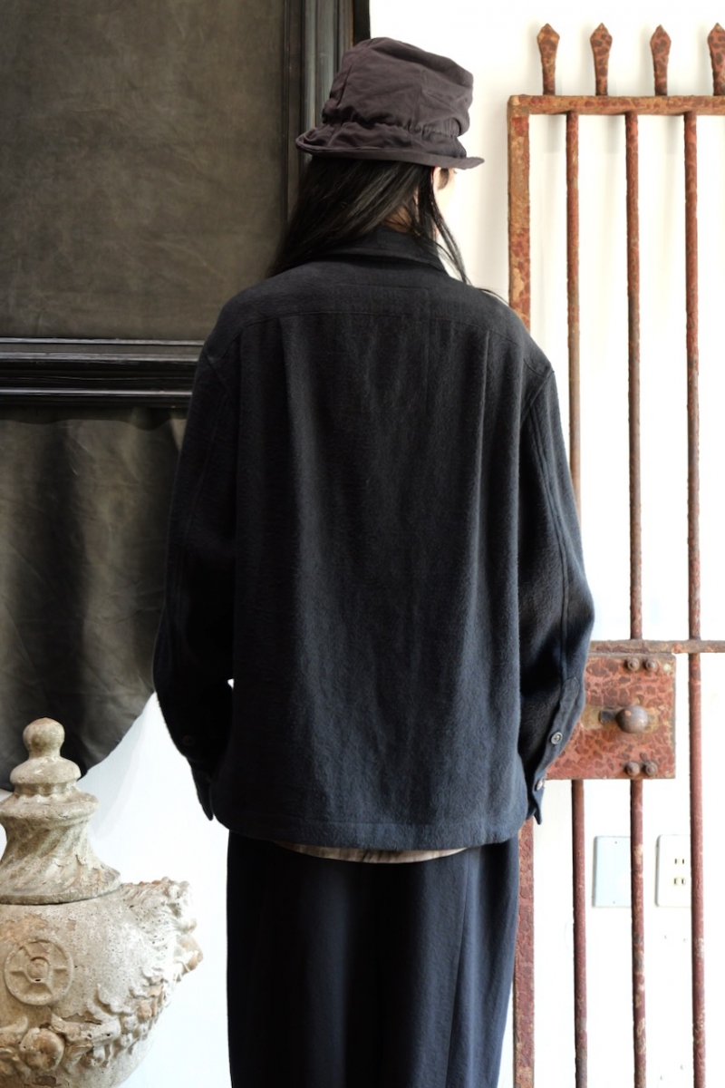 中に着込めるルーズさなのでデザインと相まって、とても使いやすいジャケットですね。