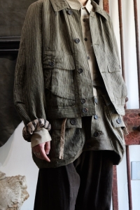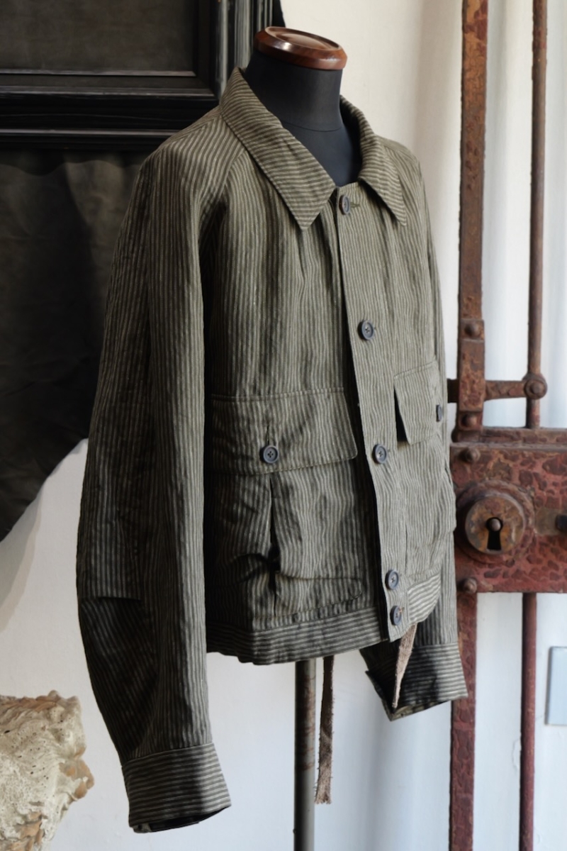 0M2610927. Striped Cropped Workers Jacket. ZIGGY CHEN.