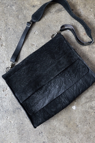 2枚のレザーを縫い合わせて製作し、バッグの中部分にもレザーの表面がくるようにしています。