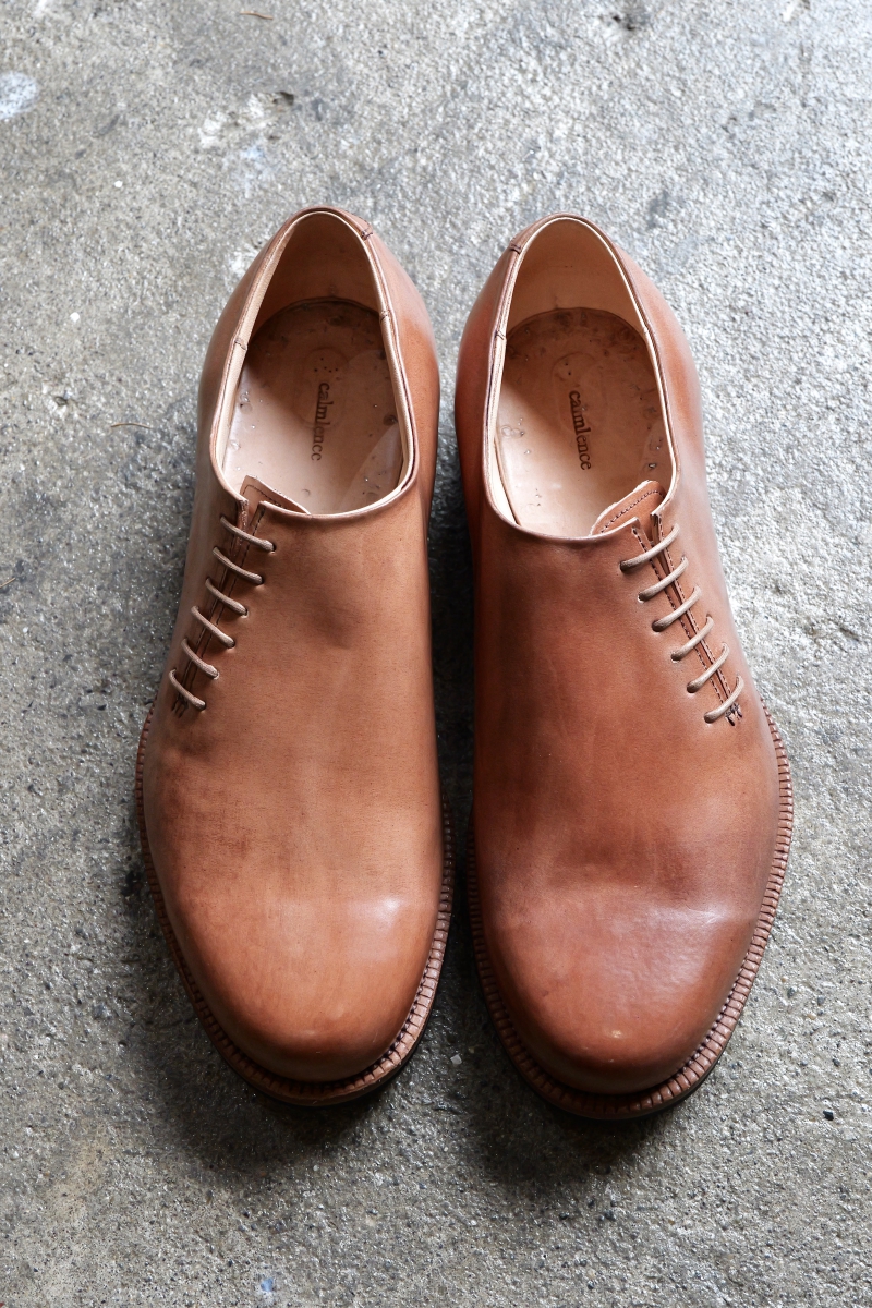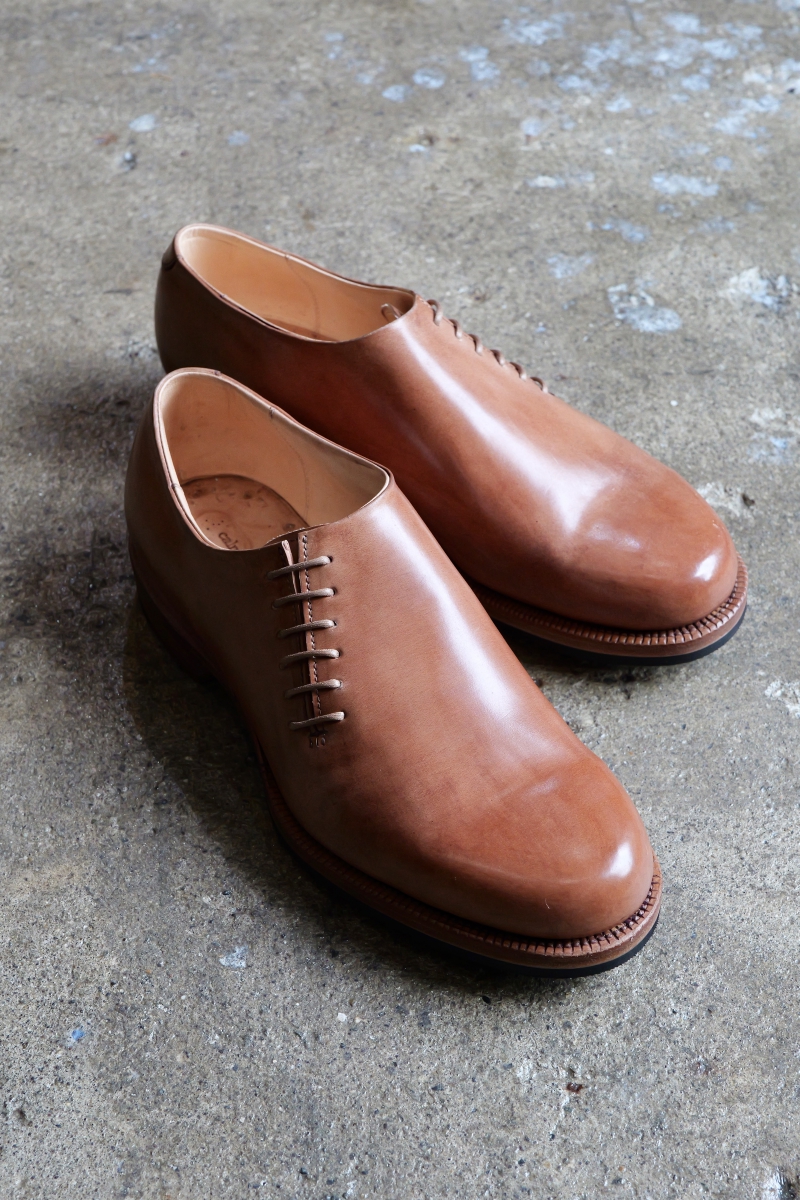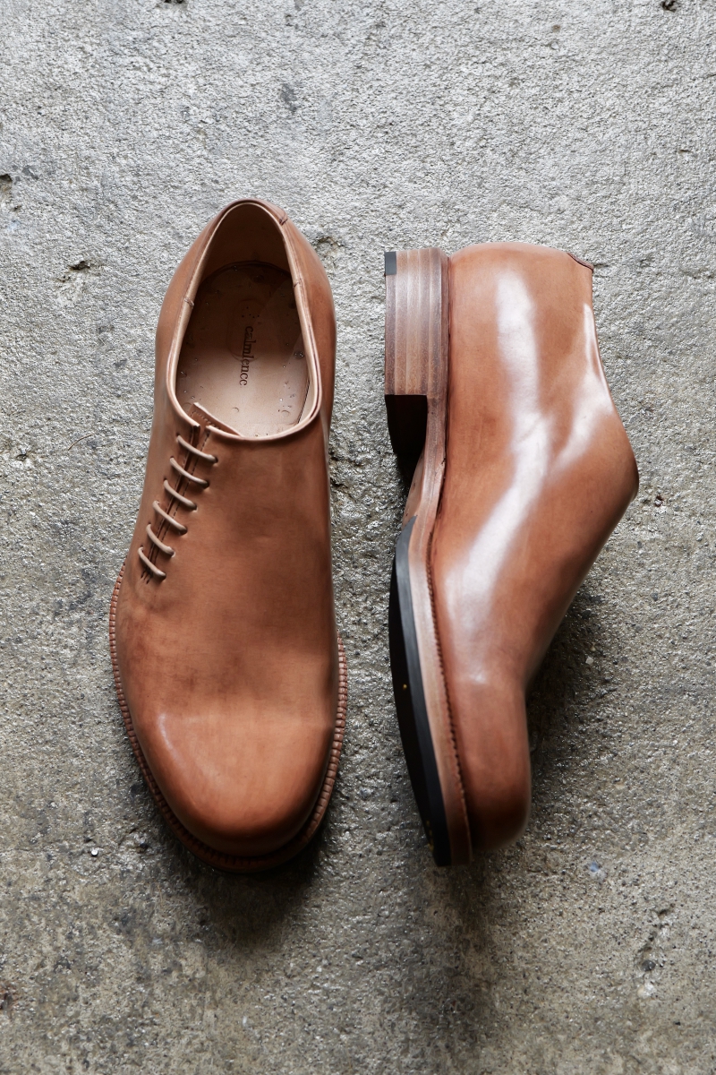 SHOES001. Side Laced Whole Cut Shoes Shinki Oil Cordovan. Light Brown. calmlence.
