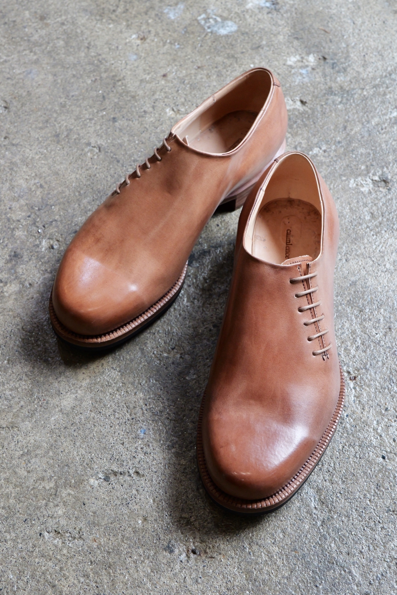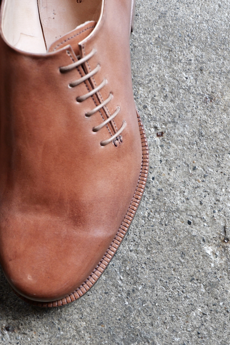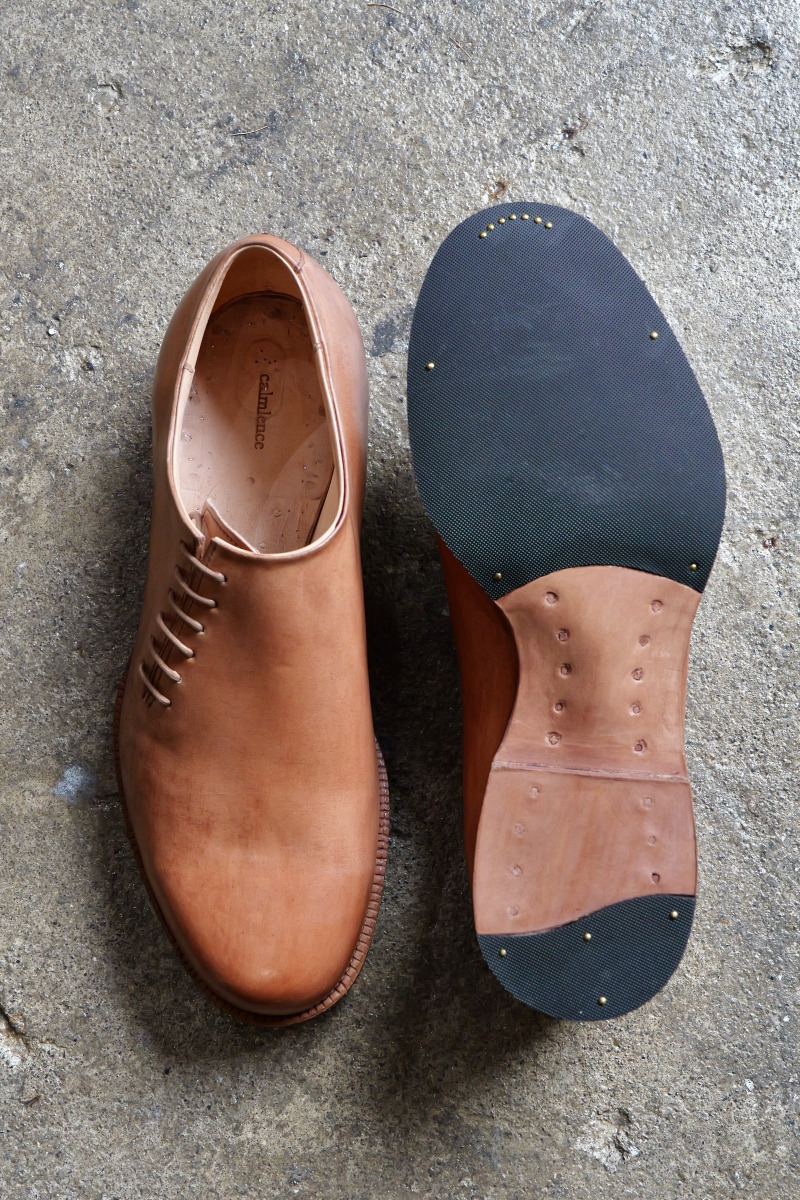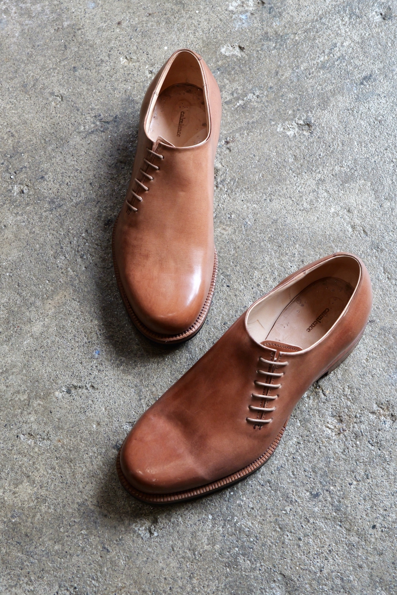 SHOES001. Side Laced Whole Cut Shoes Shinki Oil Cordovan. Light Brown. calmlence.