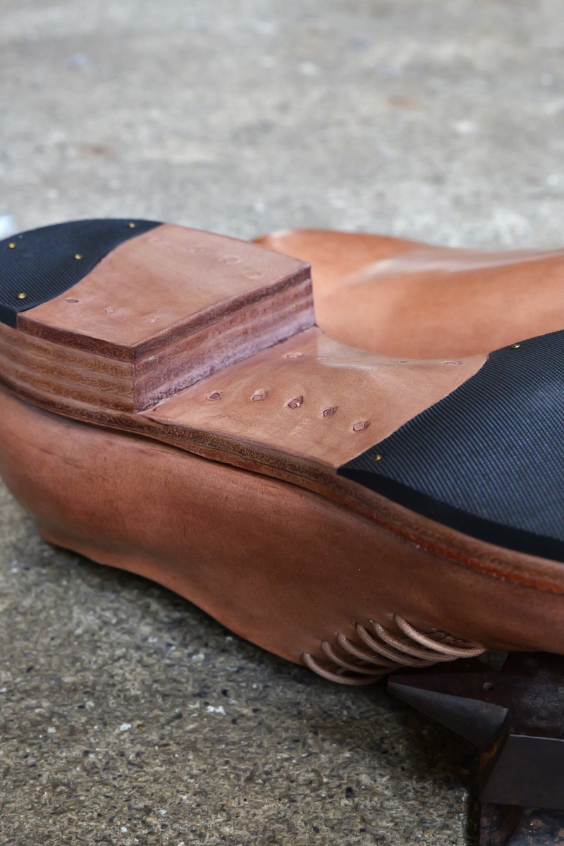 ソールの土踏まず部分はシャンクの上に厚皮を当てしっかりと膨らみを