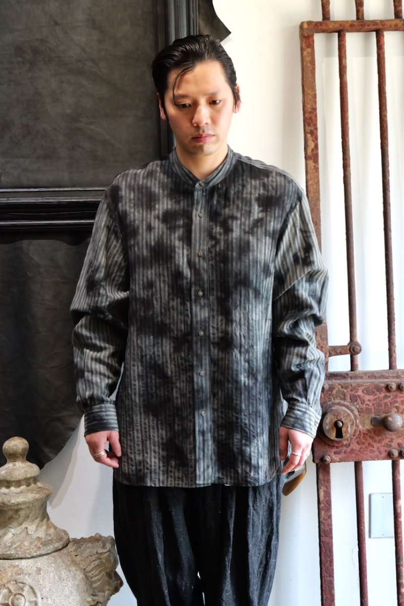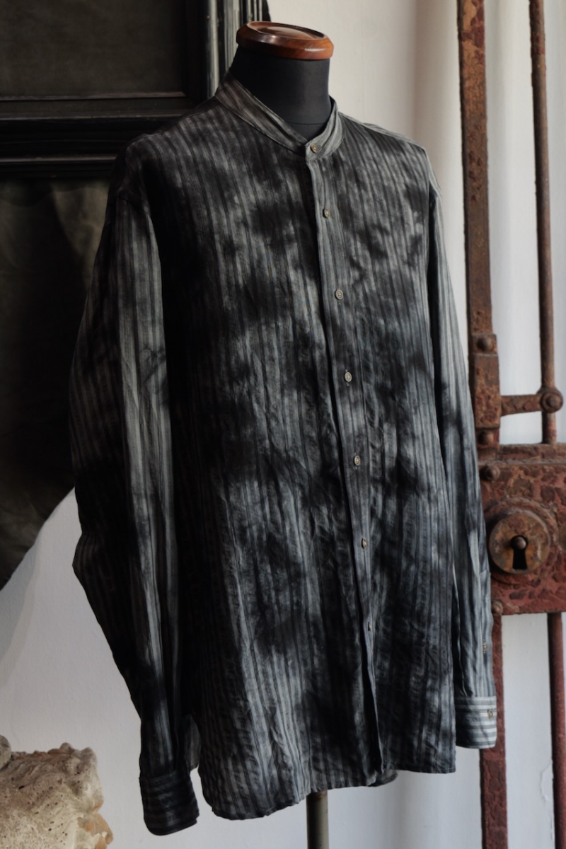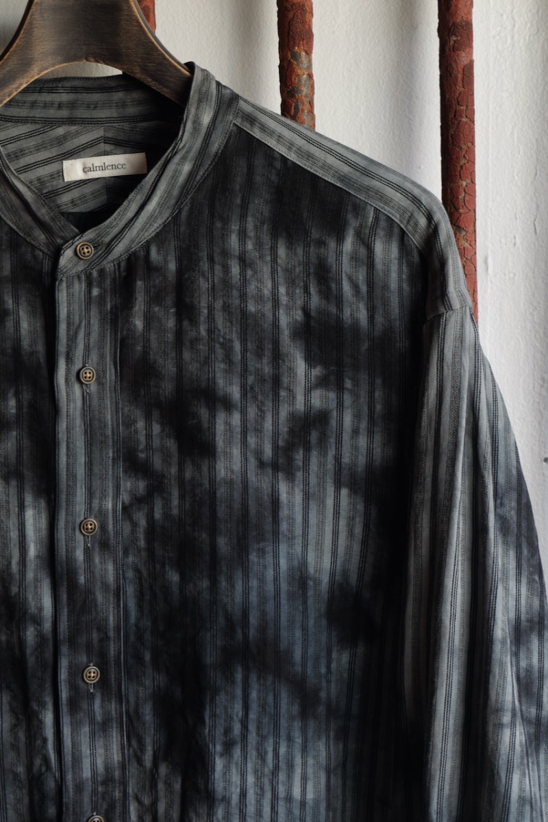 Band Collar Shirt Dobby Stripe Dyed.