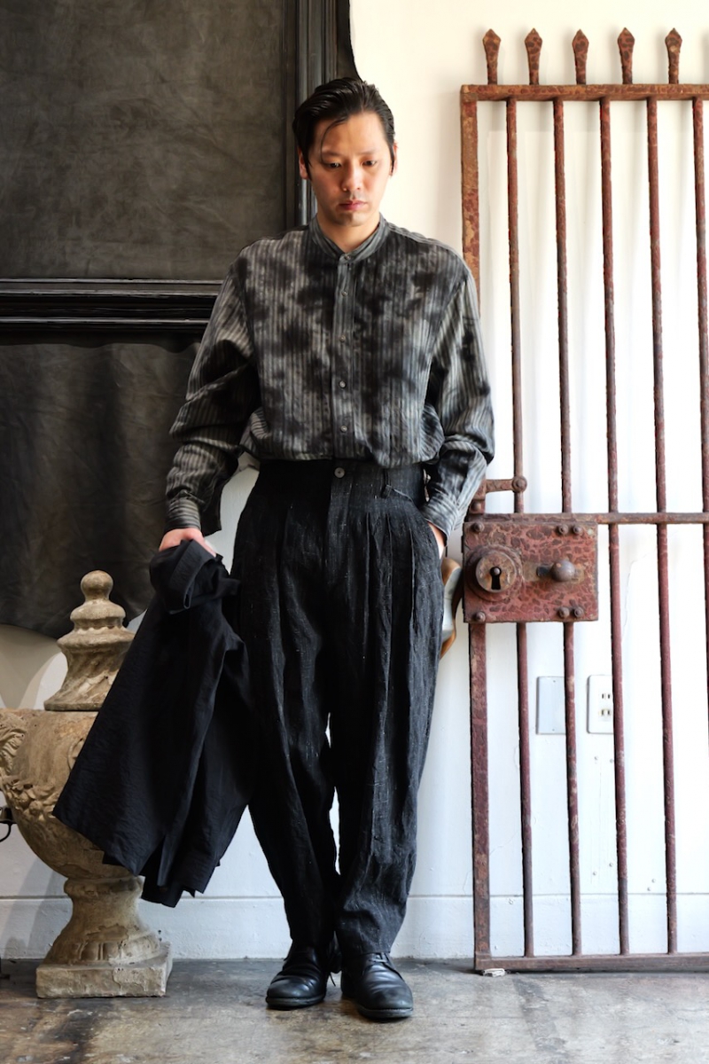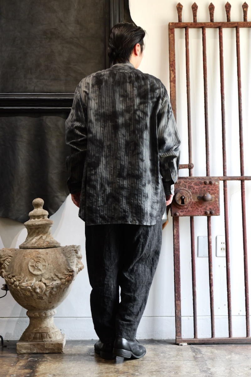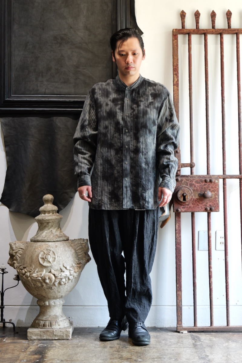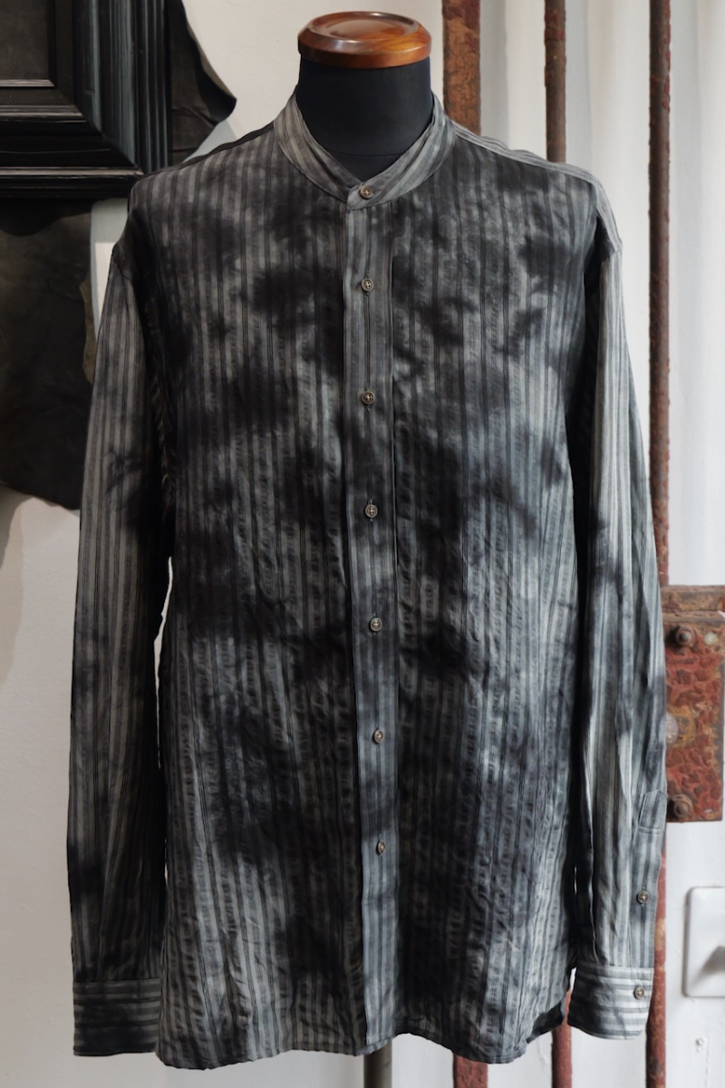 Band Collar Shirt Dobby Stripe Dyed.