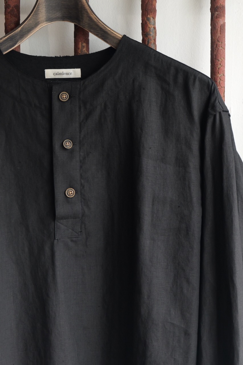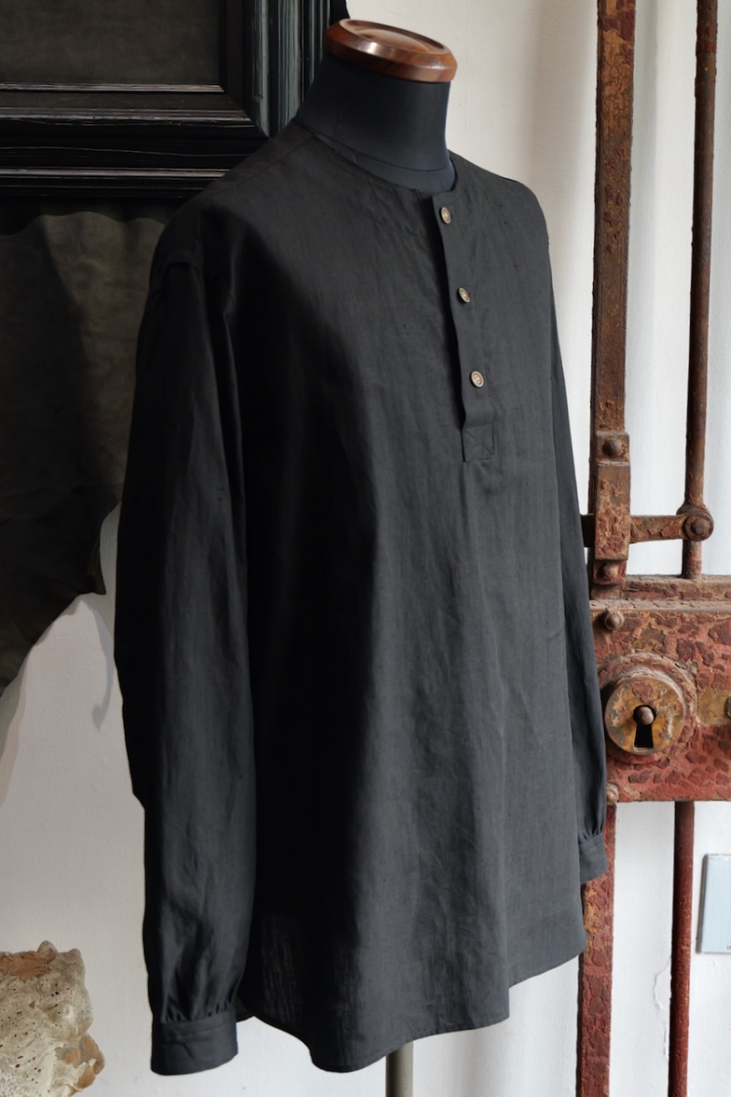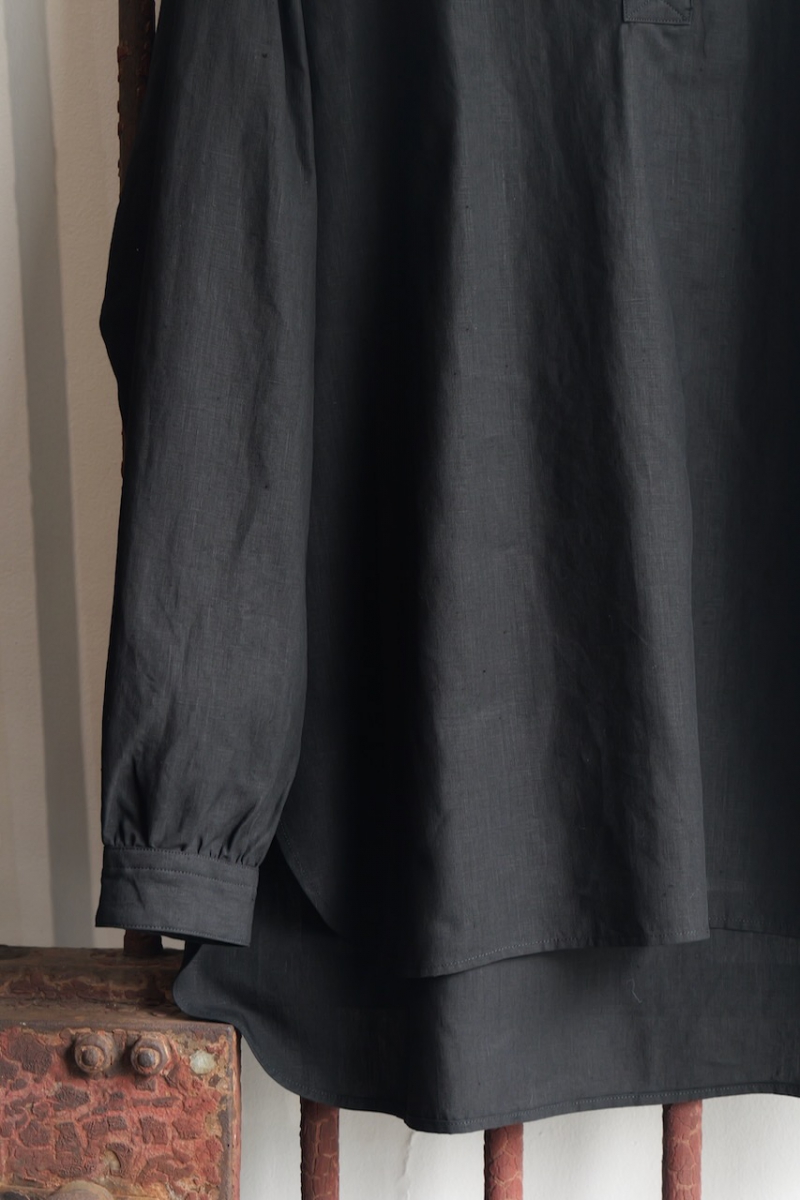 Cutoff Neck Pullover Shirt High Density Linen Cloth.