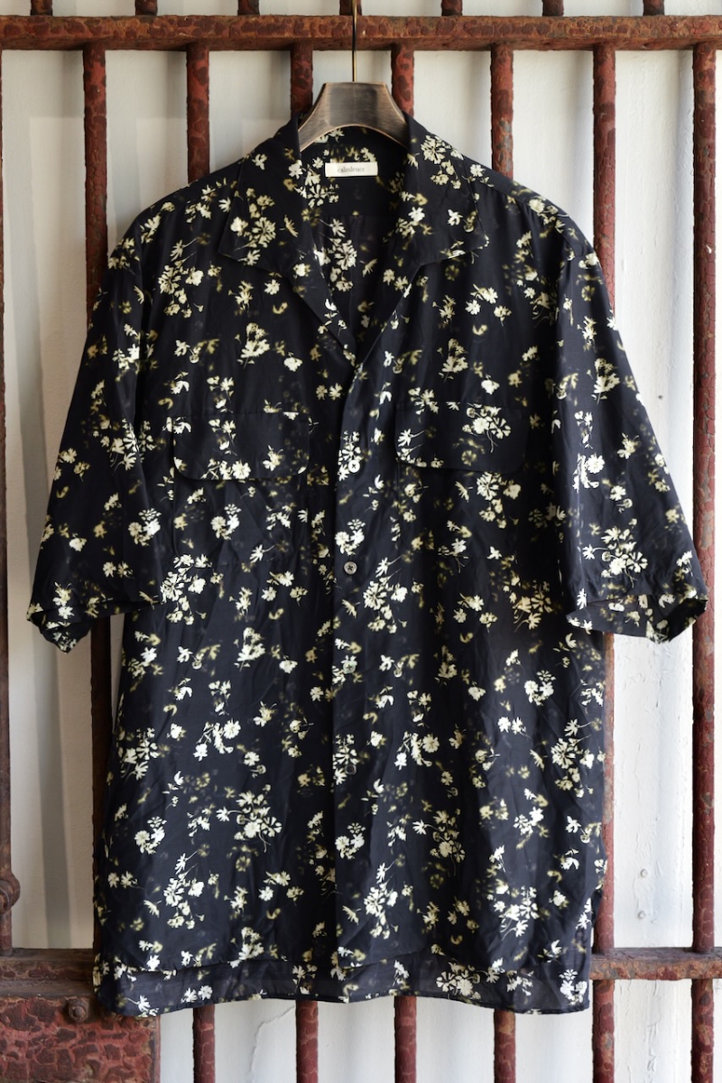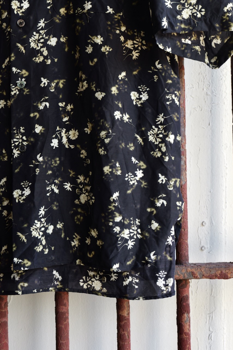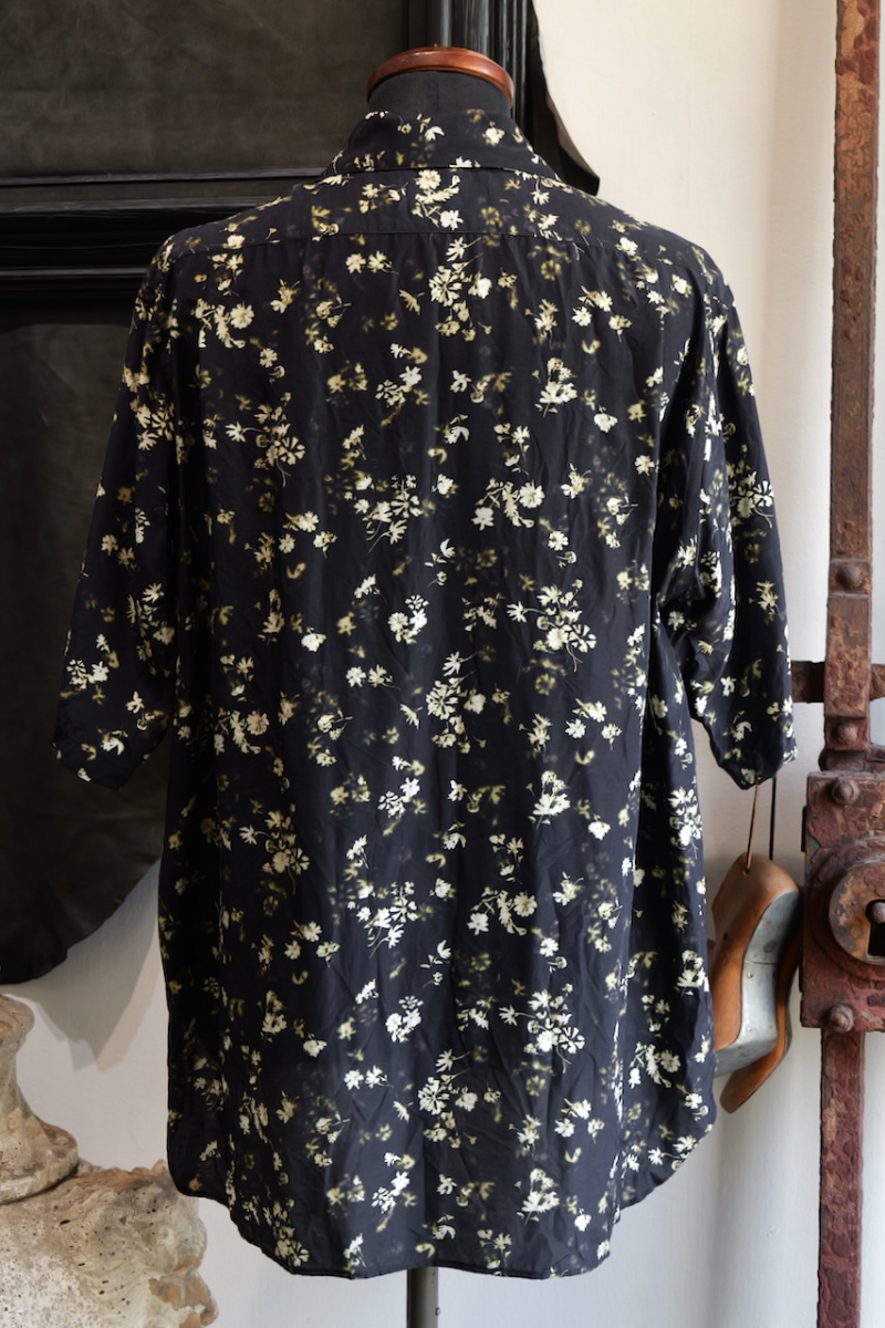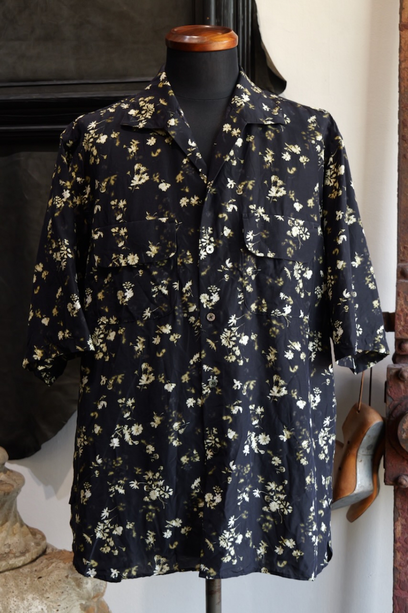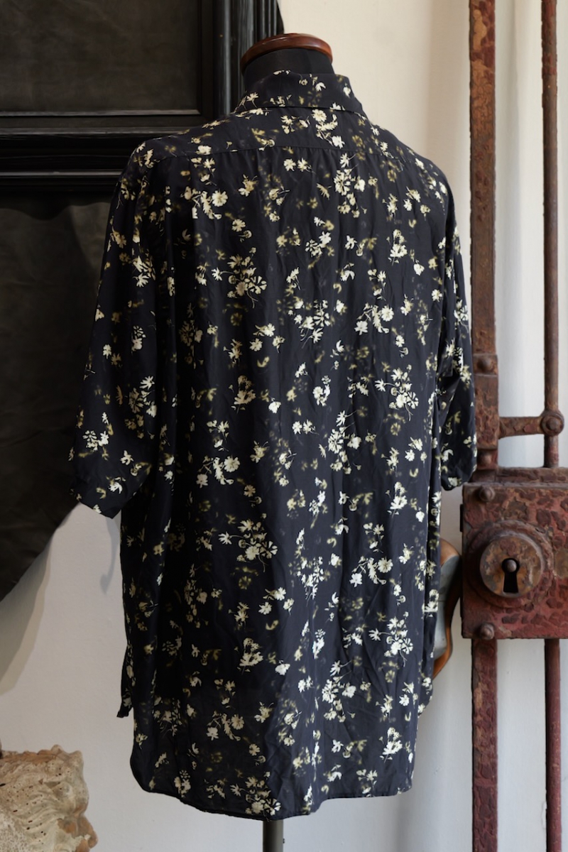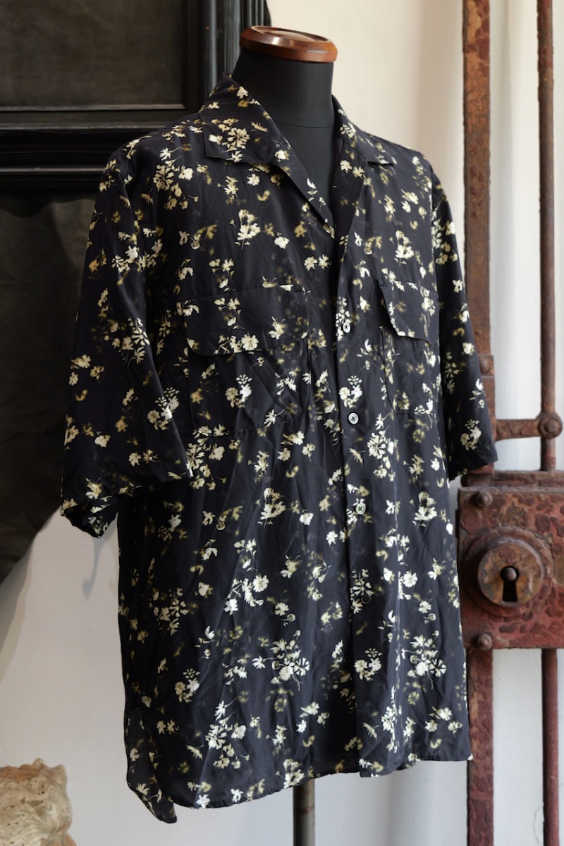 Classic Open Collar Short Sleeve Shirt Flower Print Silk Cupla.
