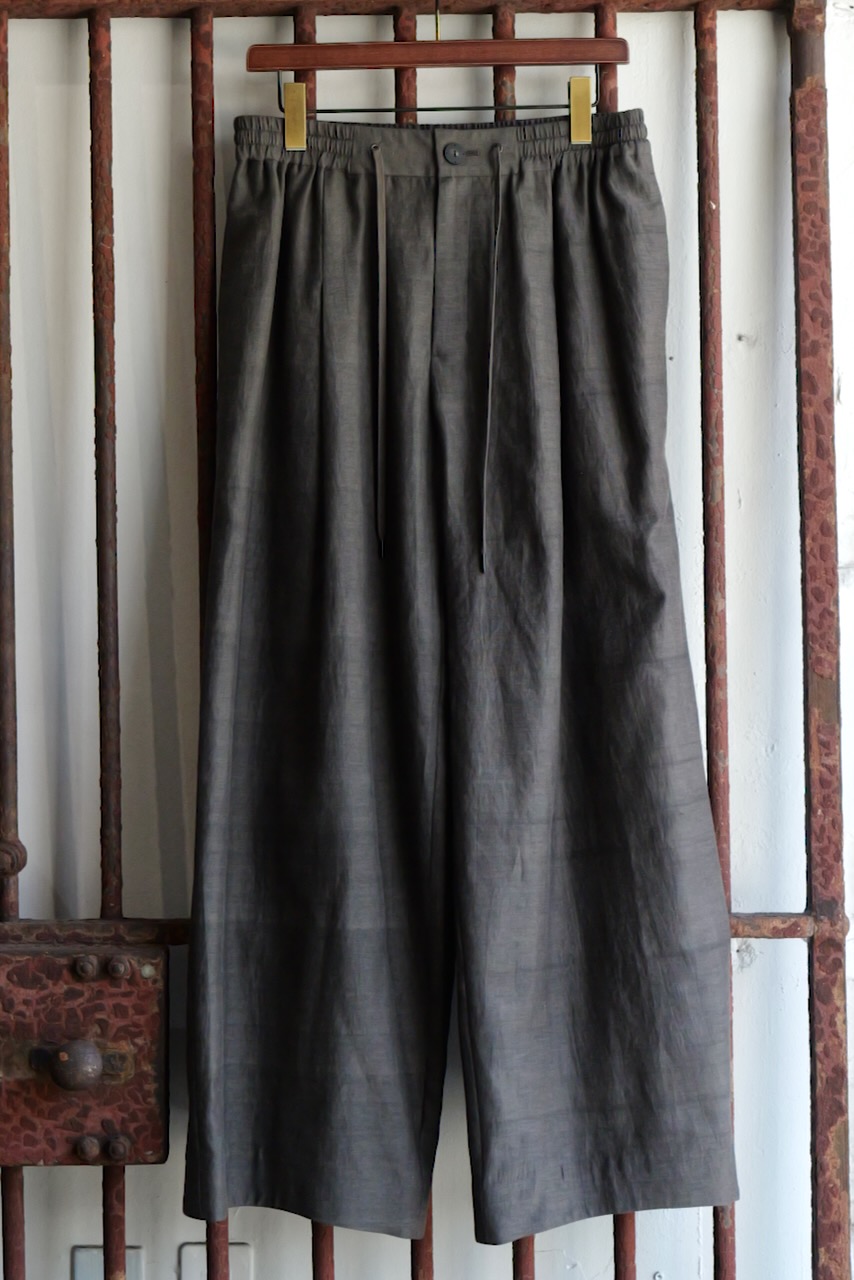そこに細番手の麻糸を千鳥柄に織り上げた素材をドッキングしています。