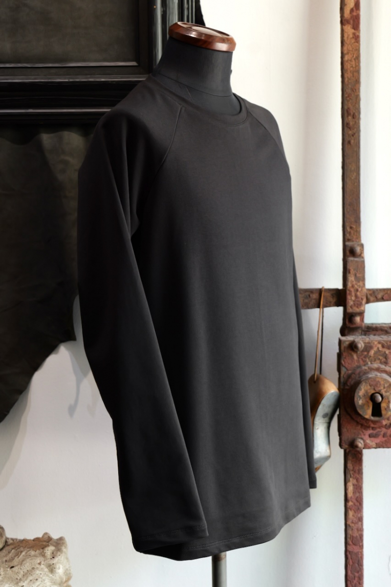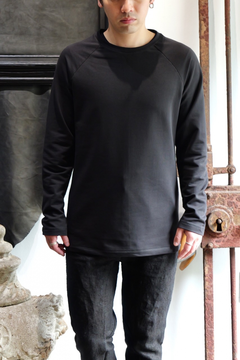 細身なシルエットなのでレザーJKTのインナーとしても使いやすくなっております。