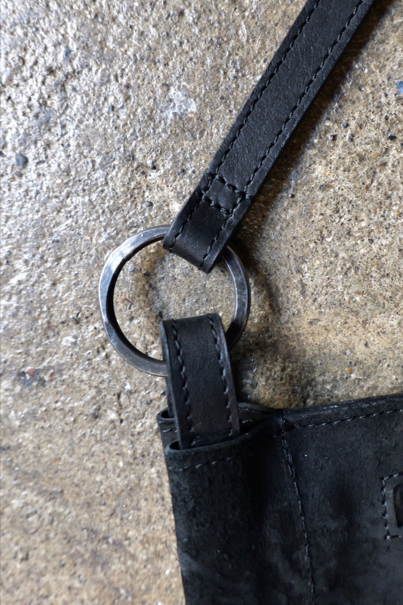 ストラップの片側はベルトループに通す仕様で、通した後にお好みの結び方で固定して頂けます。