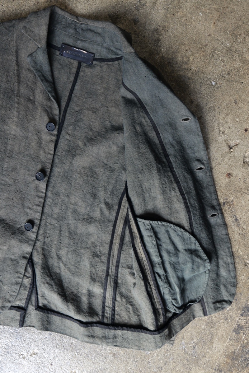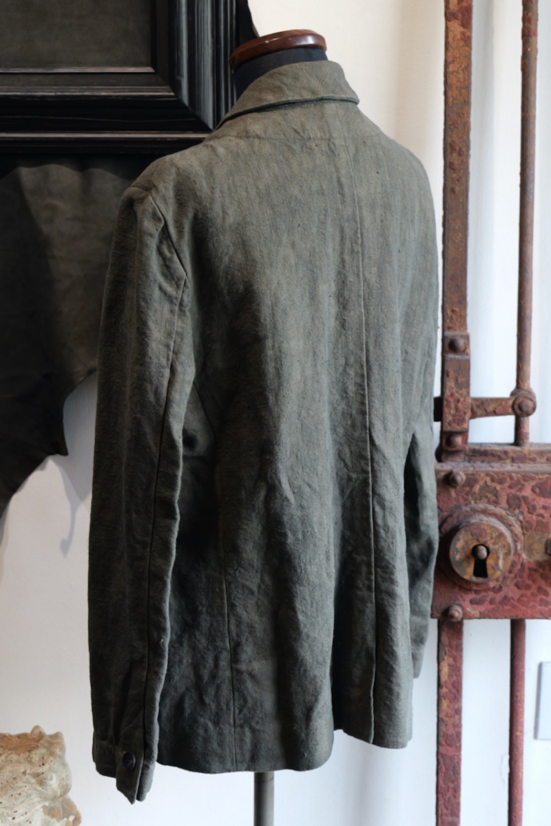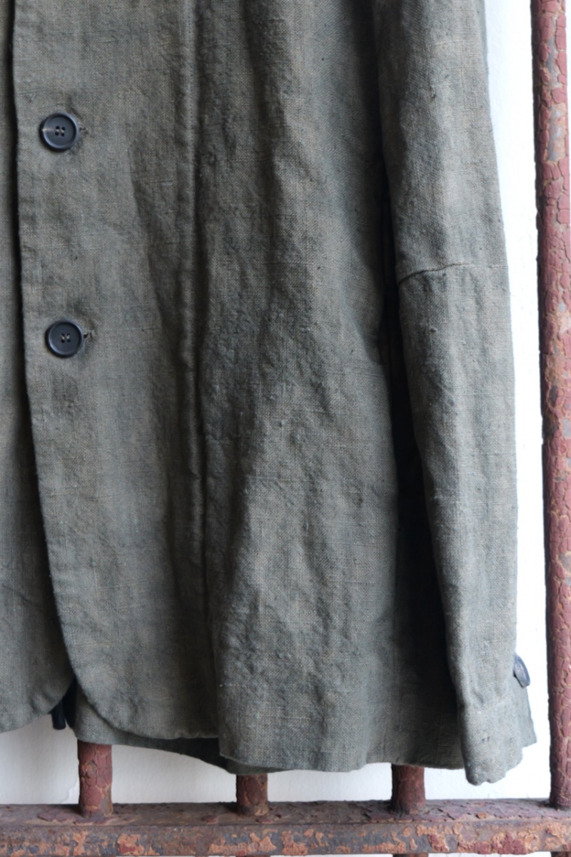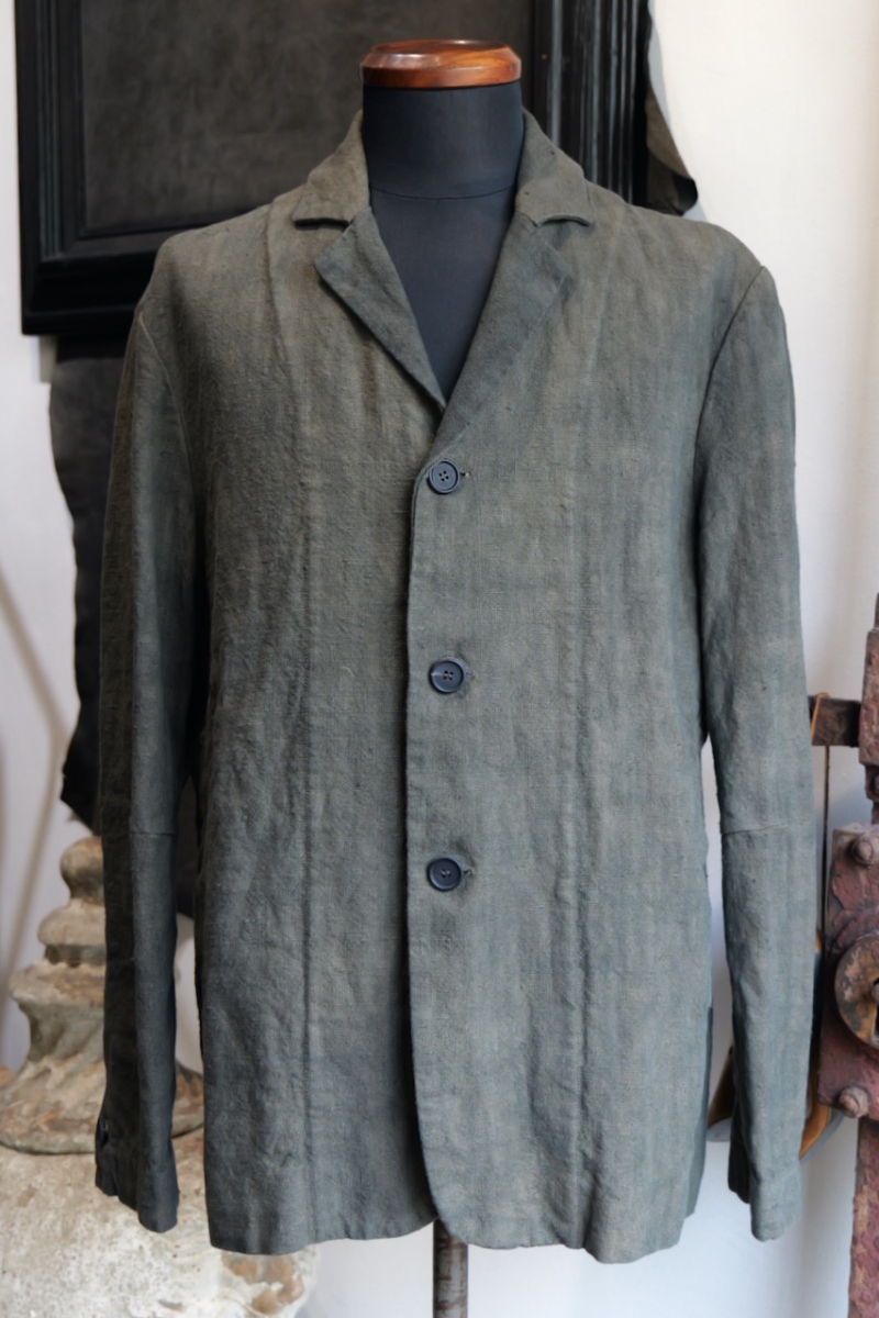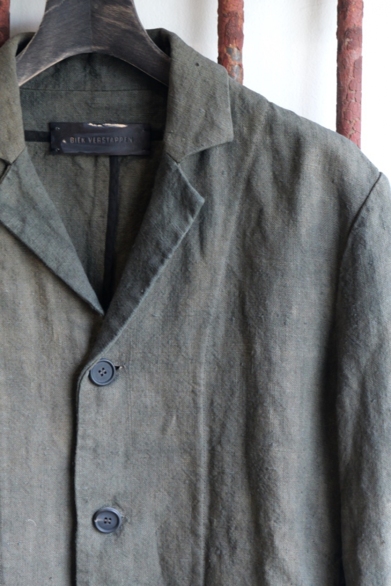 BL02-M. Heavy Belgian Stone Washed Linen Blazer Jacket. Rusted Forest(Hand Dyed). BIEK VERSTAPPEN.