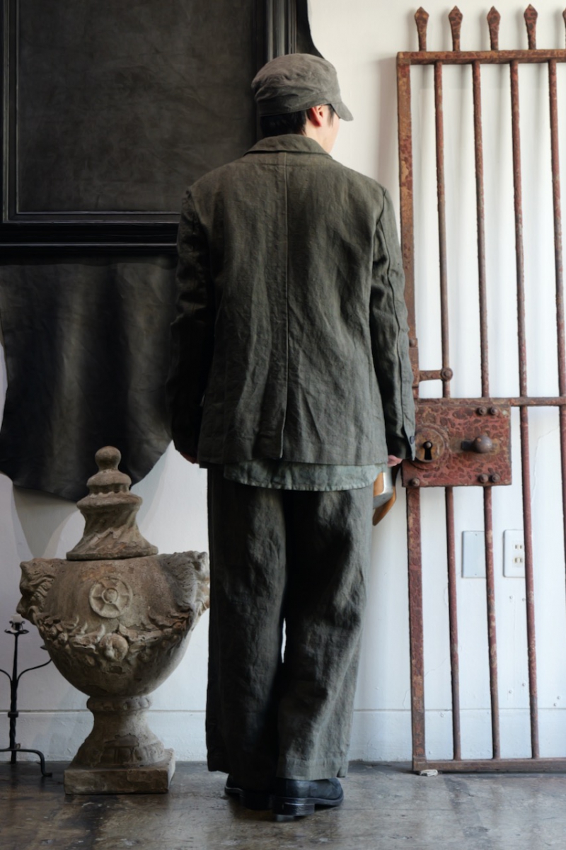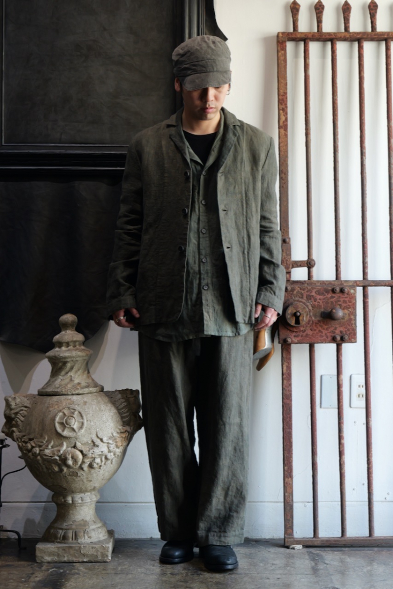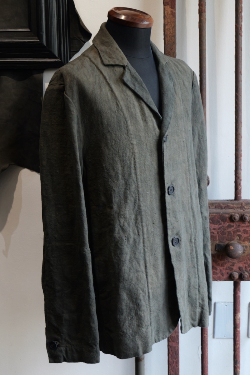 シンプルなデザインで、素材の良さと染色による独特な雰囲気がよく出ている1着です。