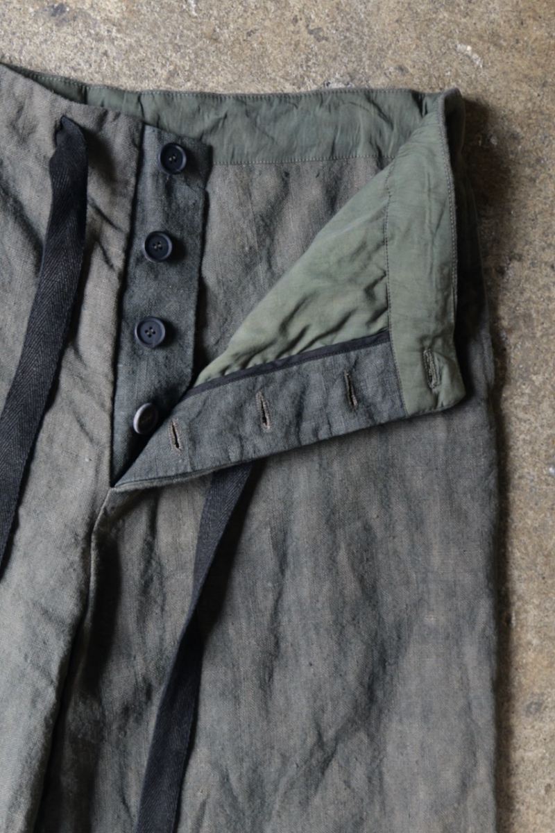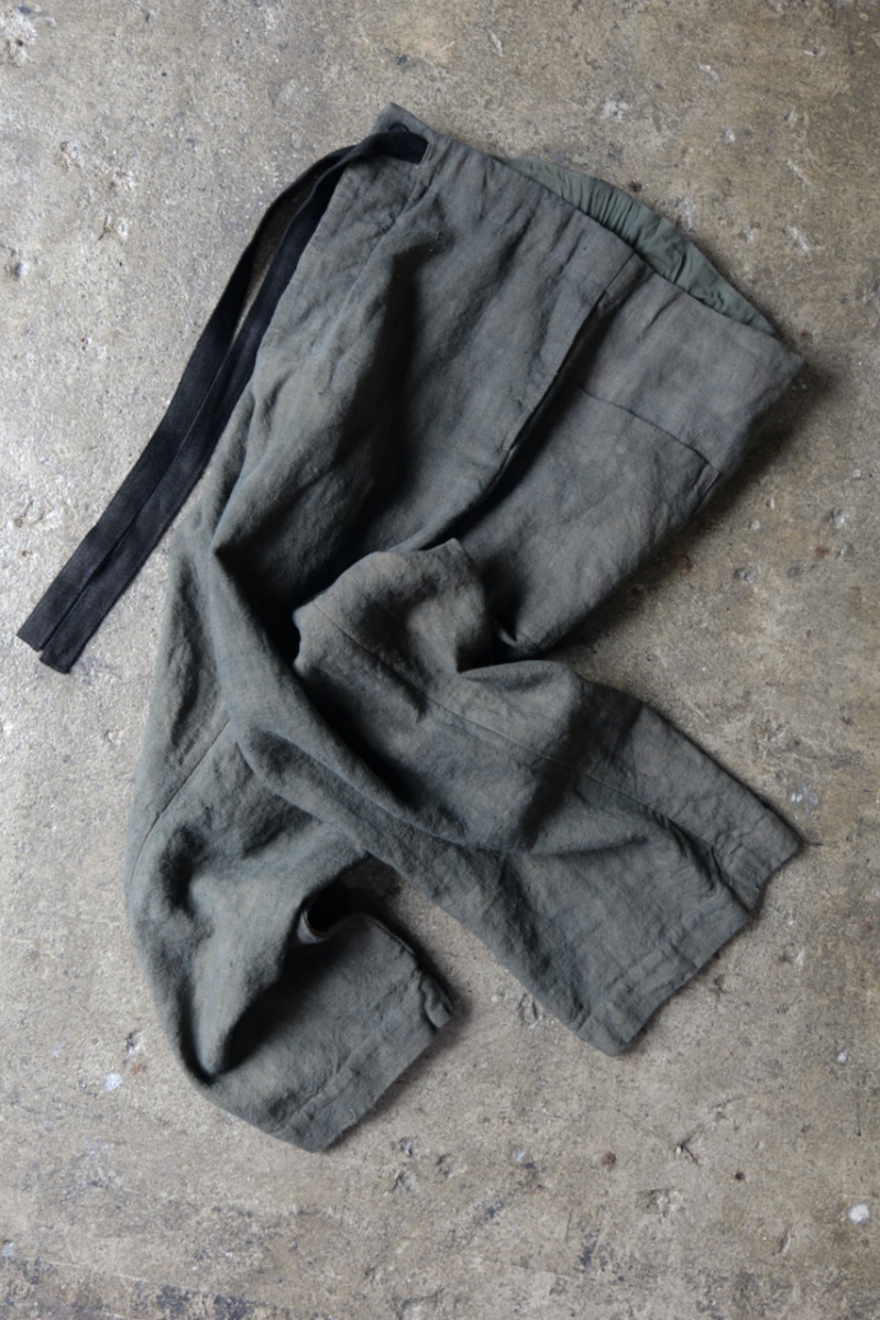 ウエストのドローコードは手染めのウールテープで作られております。(画像11枚目参照)
