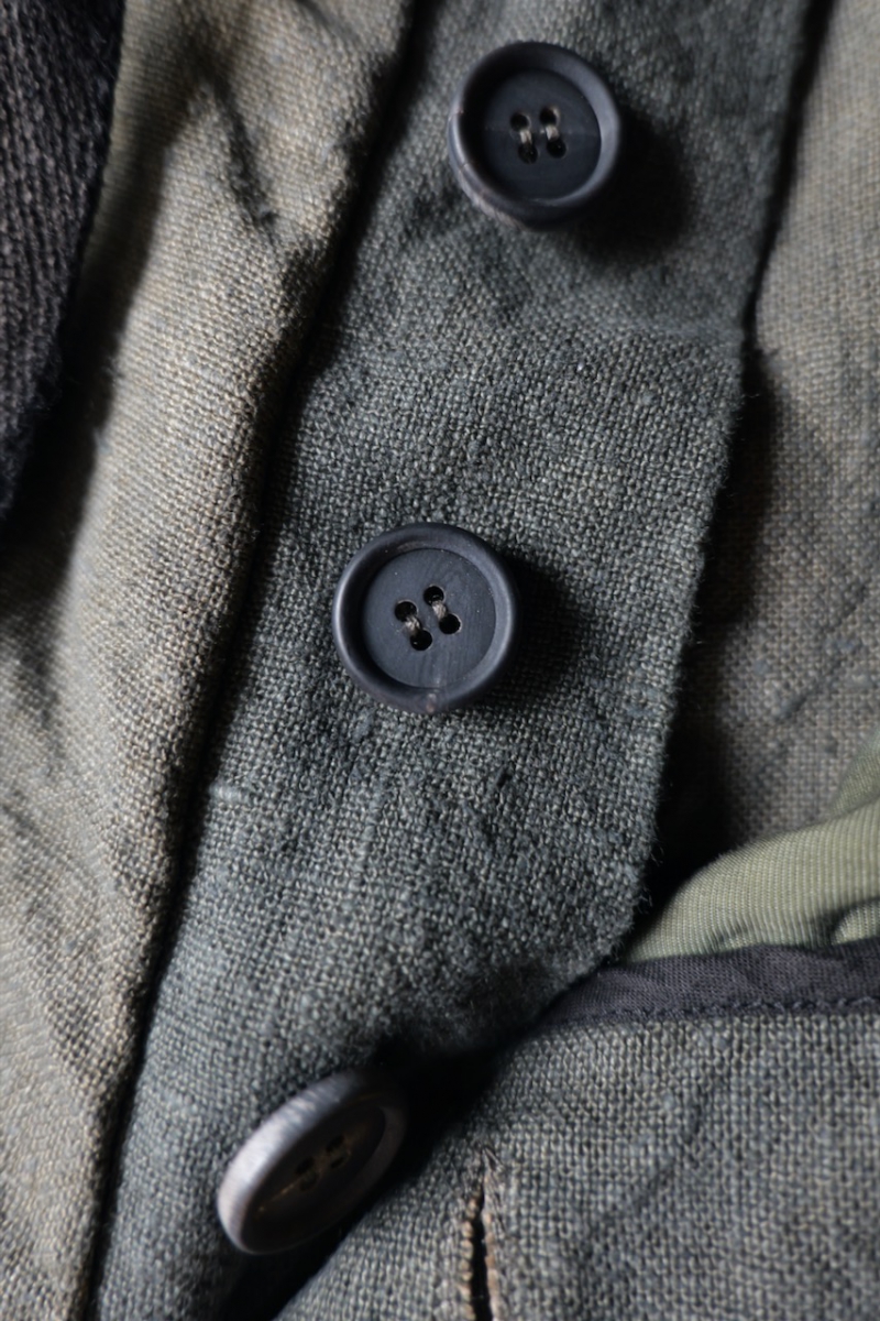 シンプルなデザインで、素材の良さと染色による独特な雰囲気がよく出ている1着です。