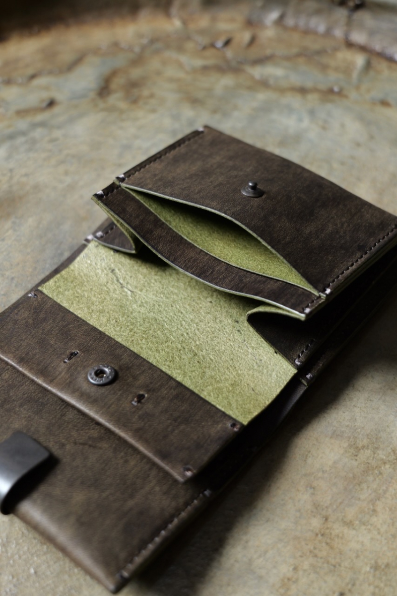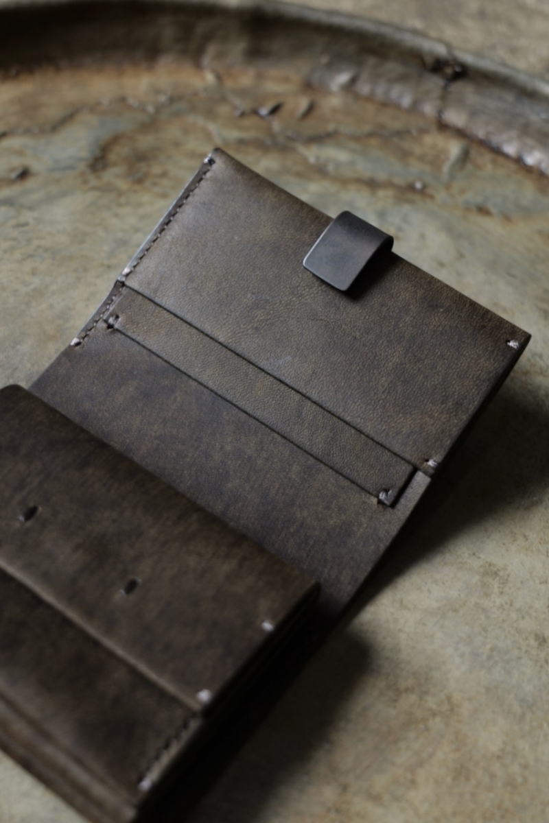 革の持つ自然な色に深みを出す伝統的な手法「バケッタ製法」で製作されております。