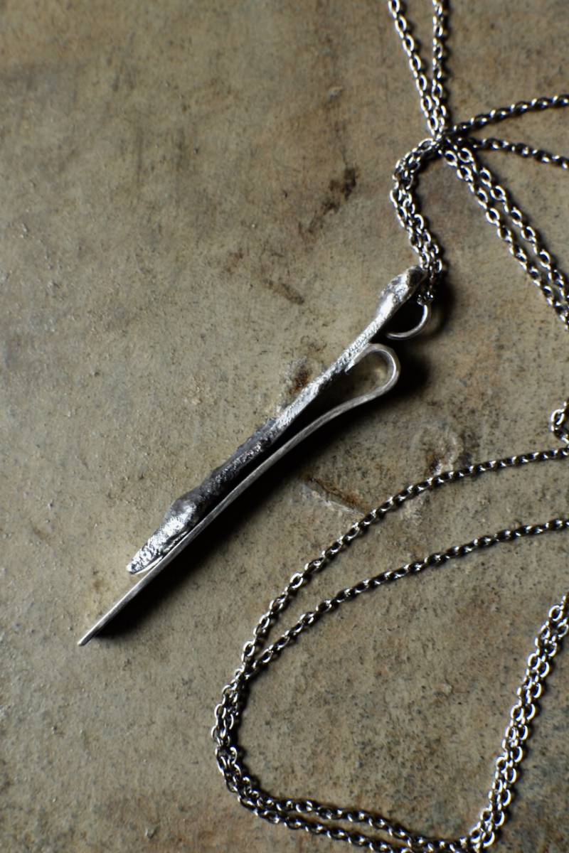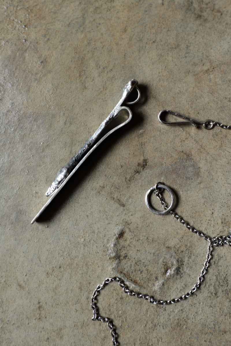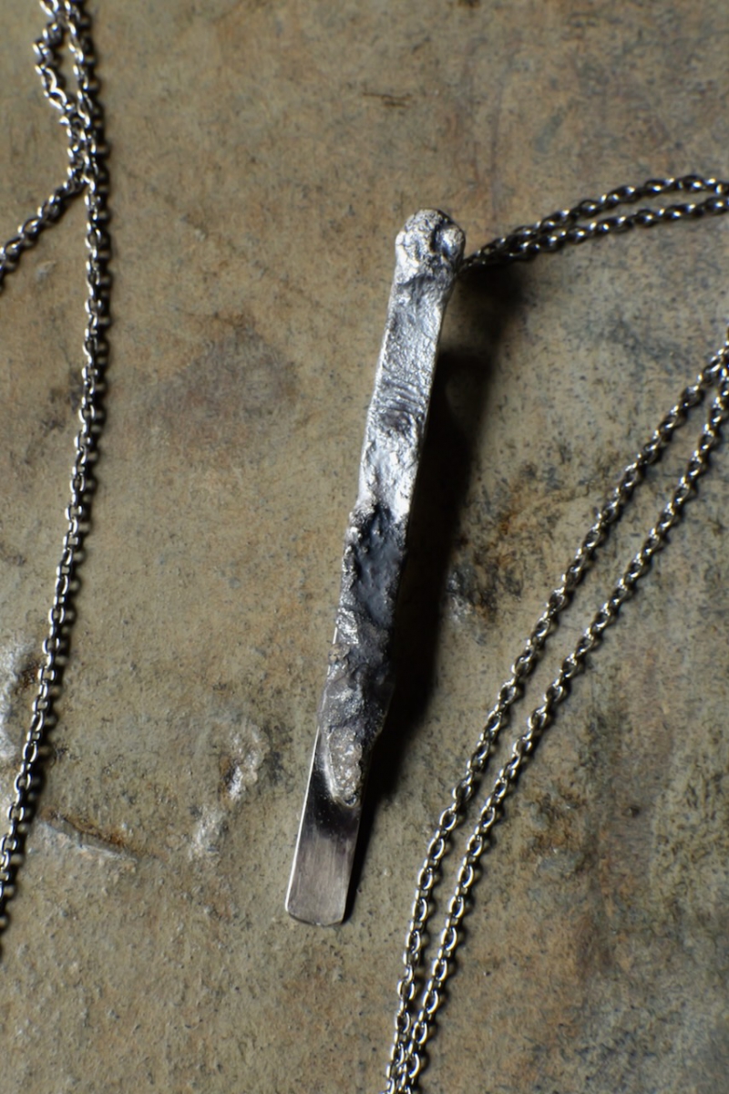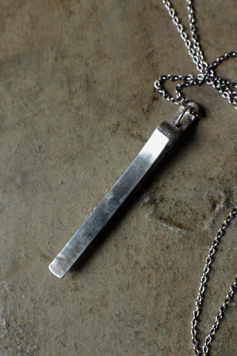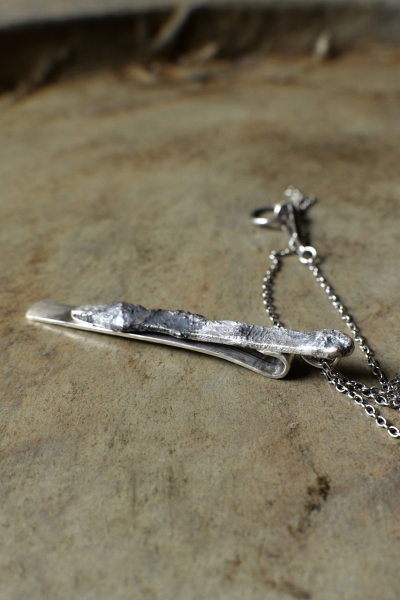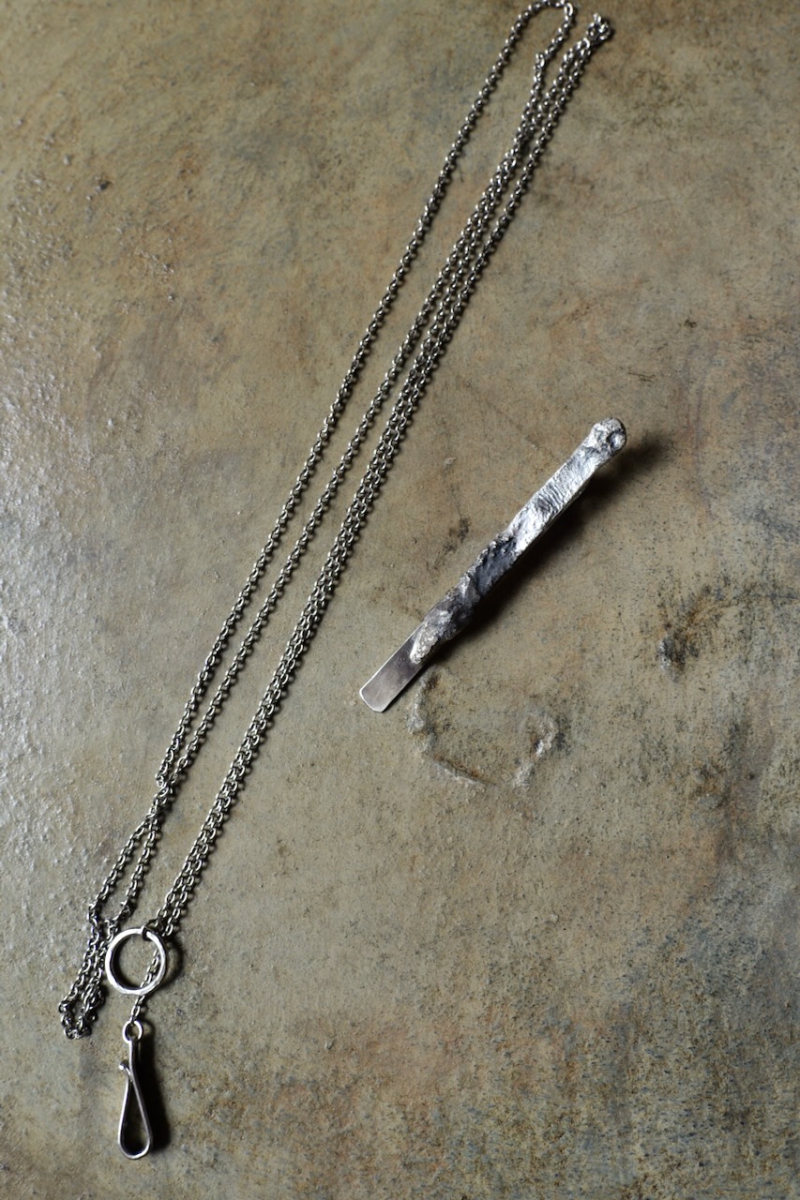 ・ネクタイピンをネックレスに落とし込んだデザインになります。