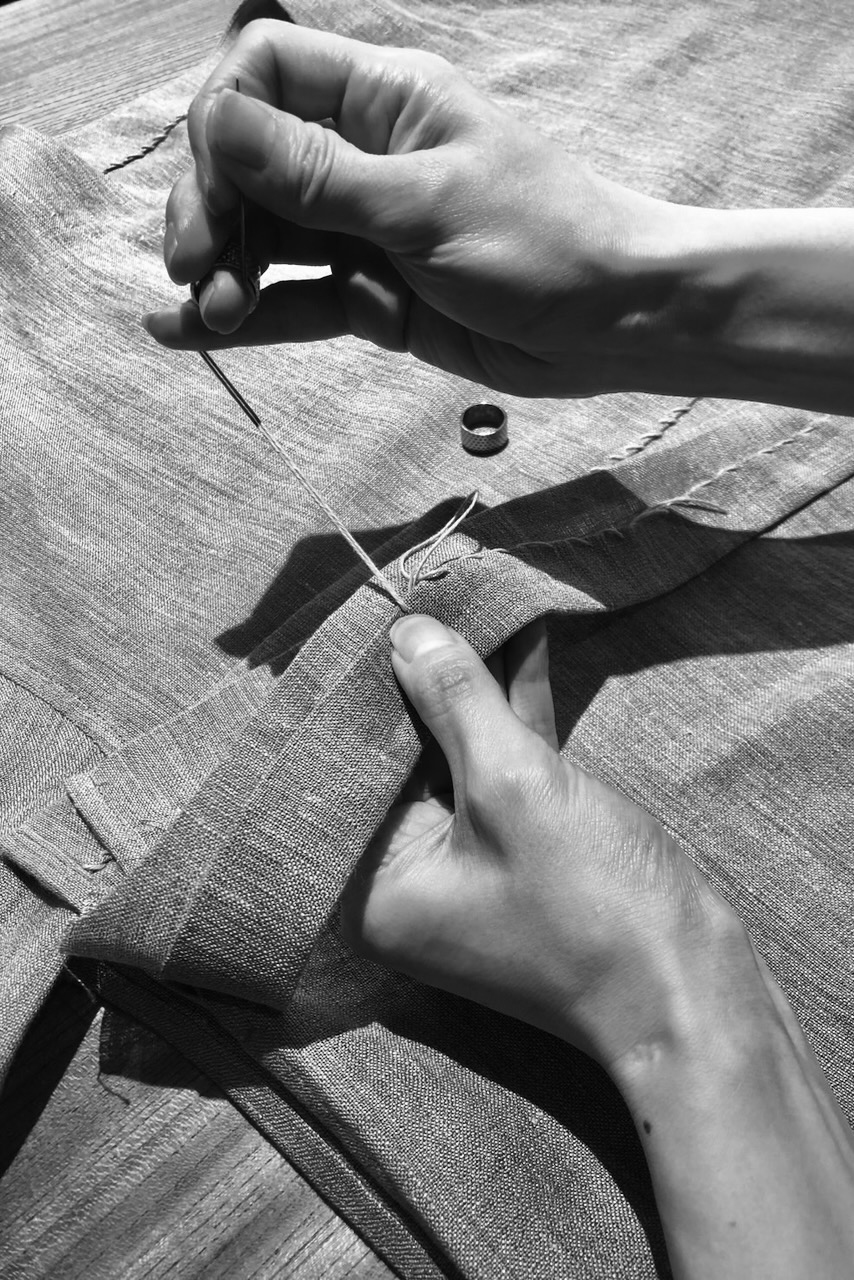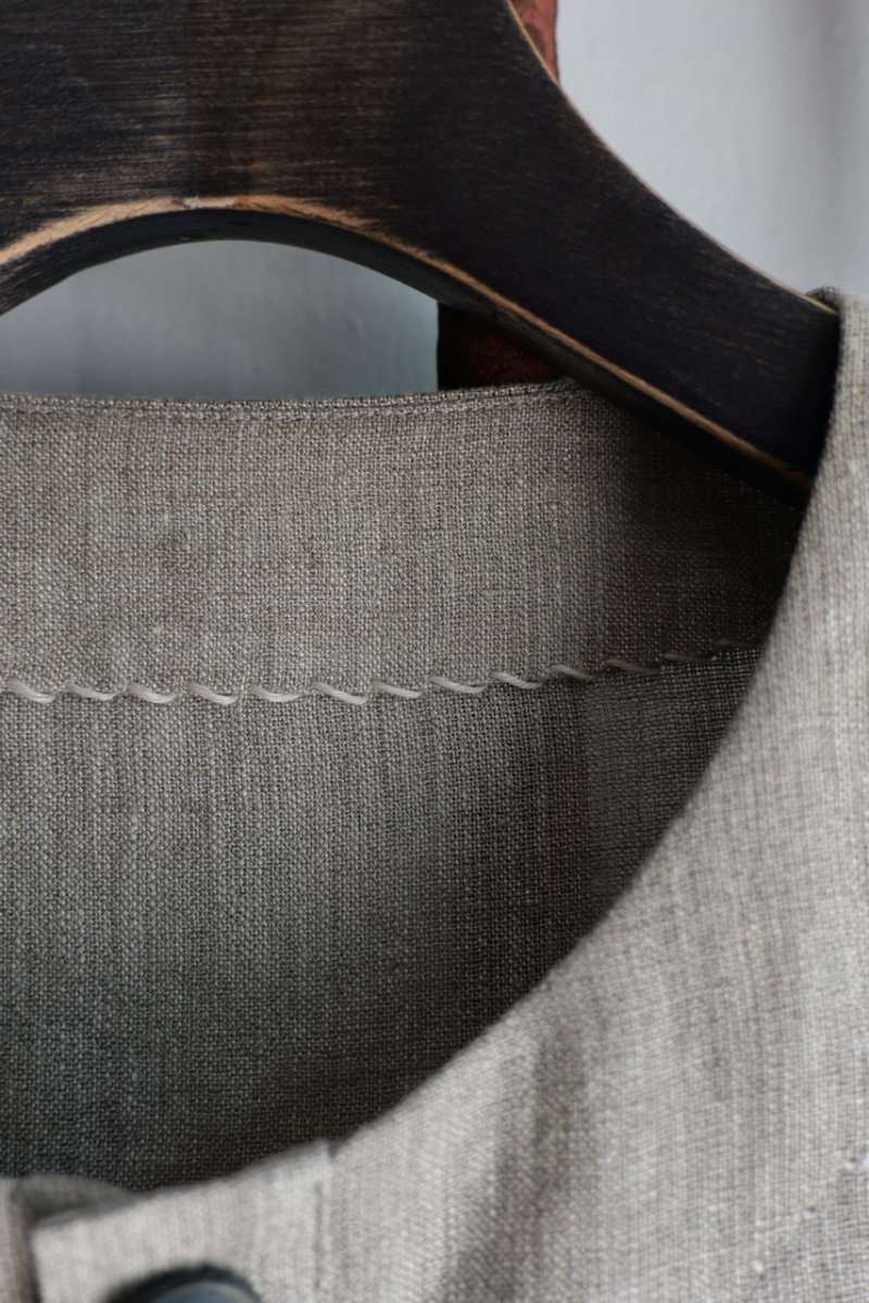 ネック、袖口、裾の始末は一針一針を職人が手縫いで仕上げております。(画像3,4,5,10,17,18枚目参照)
