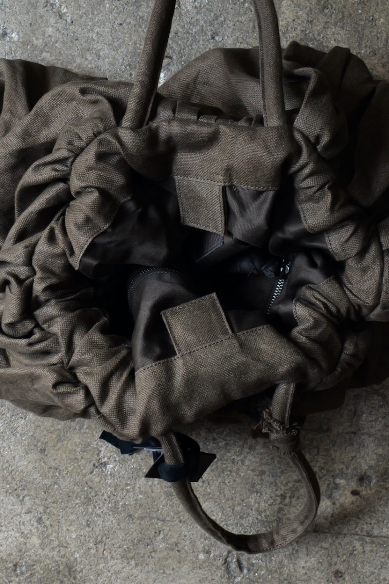ドローコードの縛り加減でシルエットを変えて頂けます。