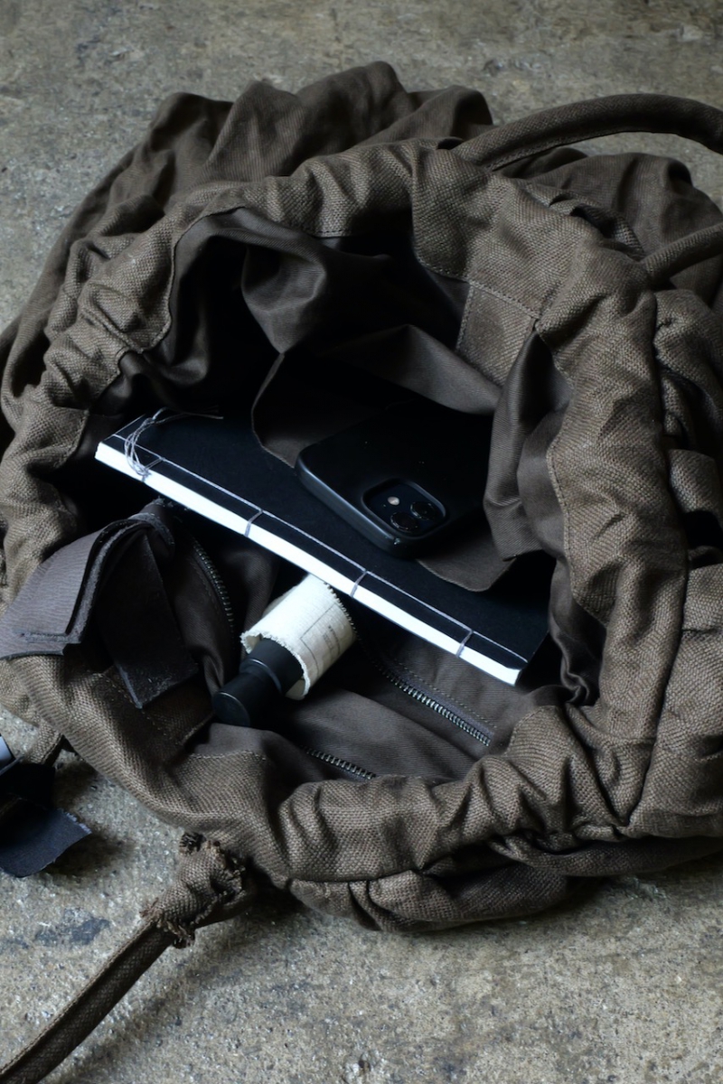 コットンの裏地が付いているので、強度を増す効果ももたらしています。