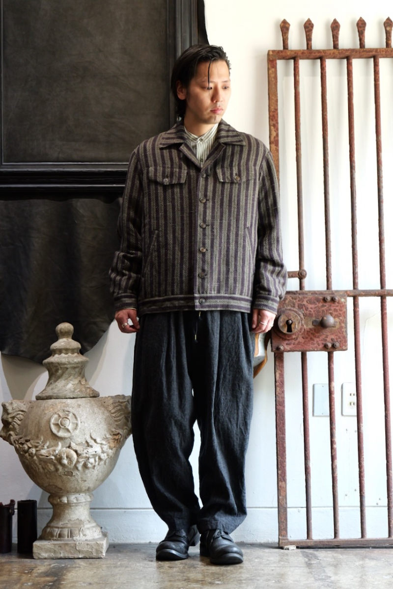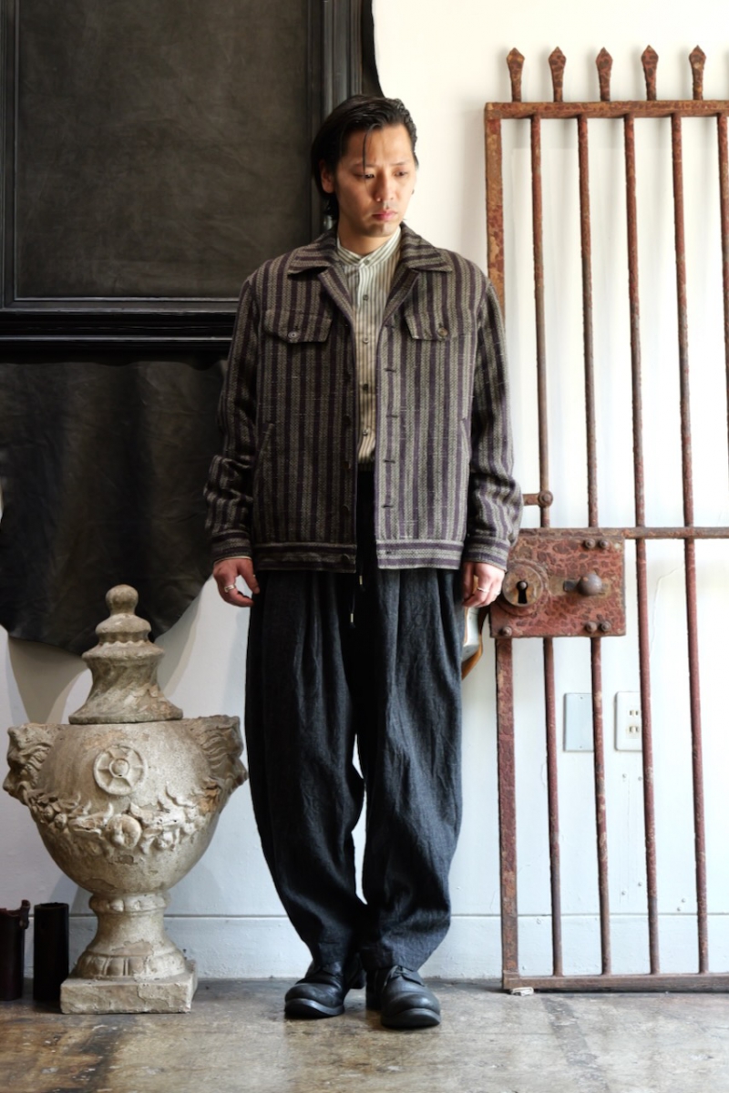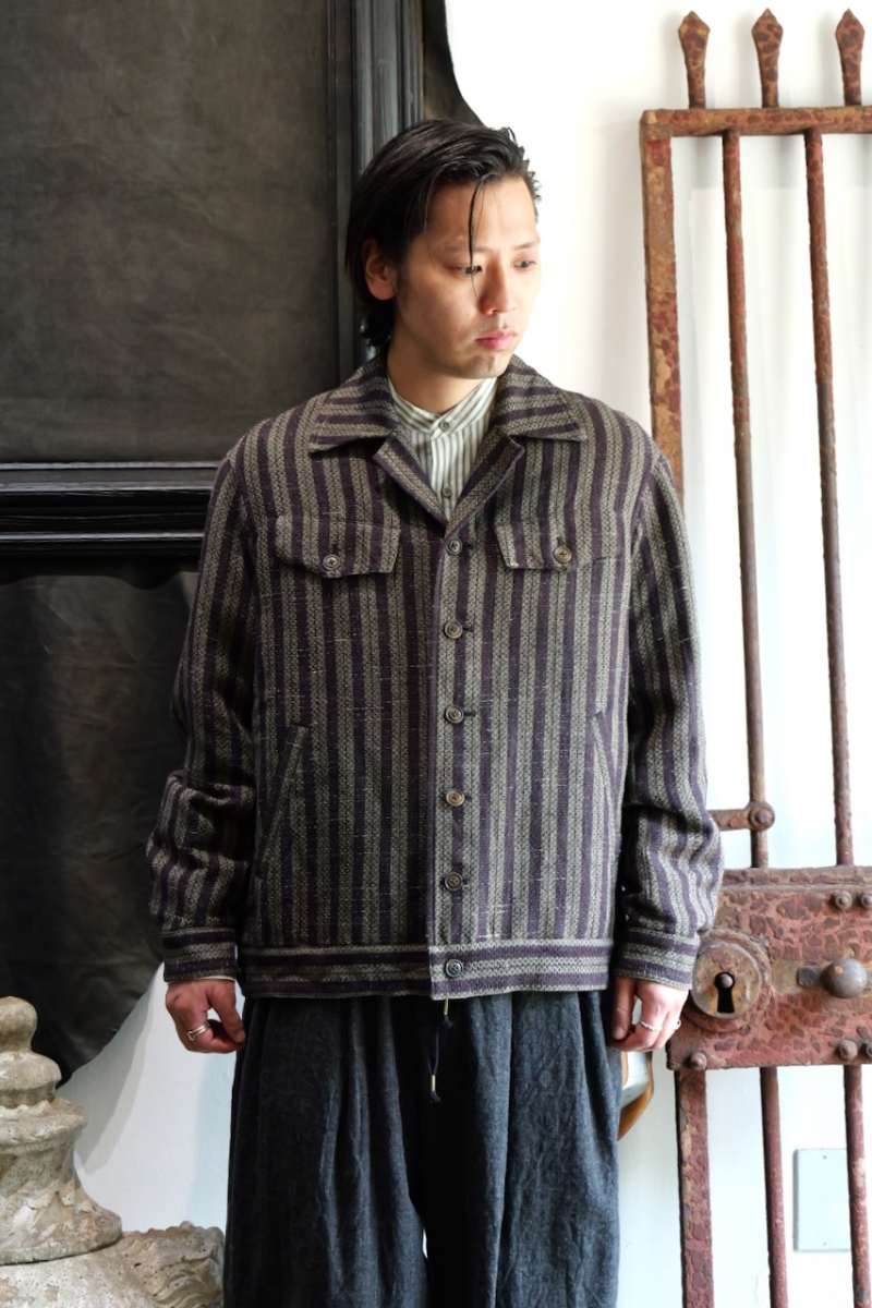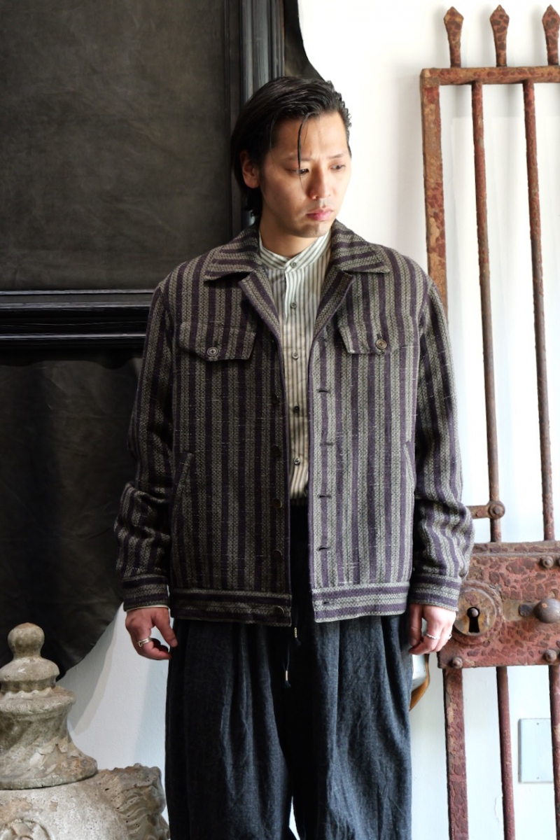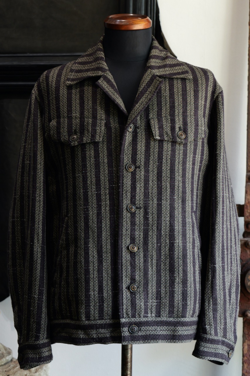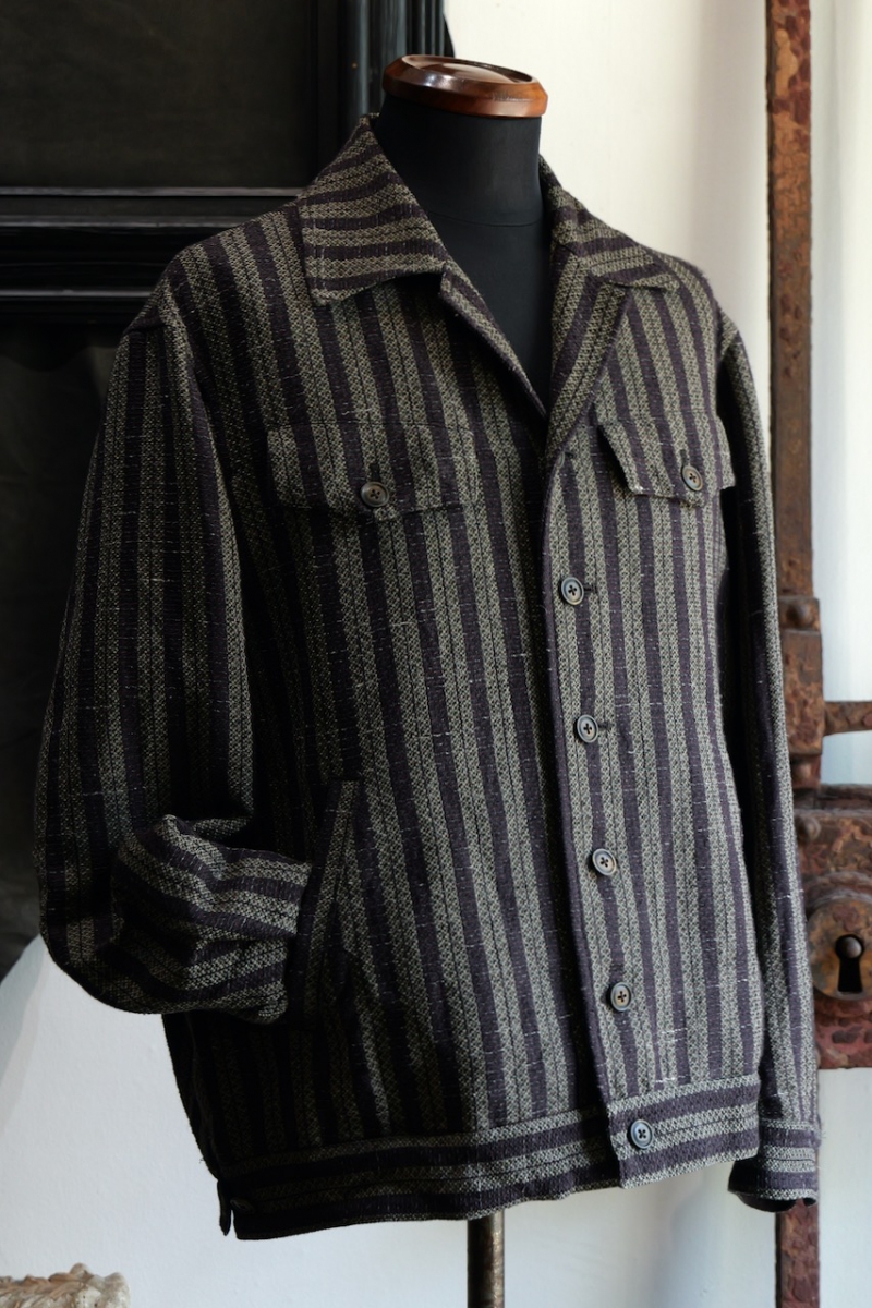 JACKET035. Military Jacket Sashiko Stripe. Dark Brown Stripe. Collection 005. calmlence.