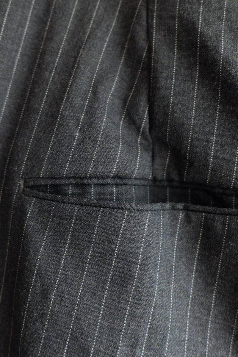 ストライプの柄合わせ(左右で柄の出方が同じこと)も繊細な仕立てとなり