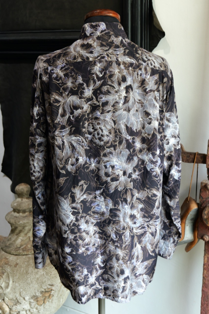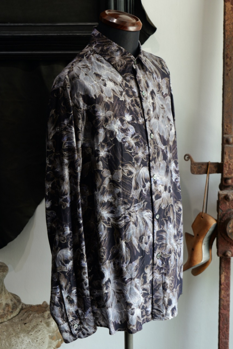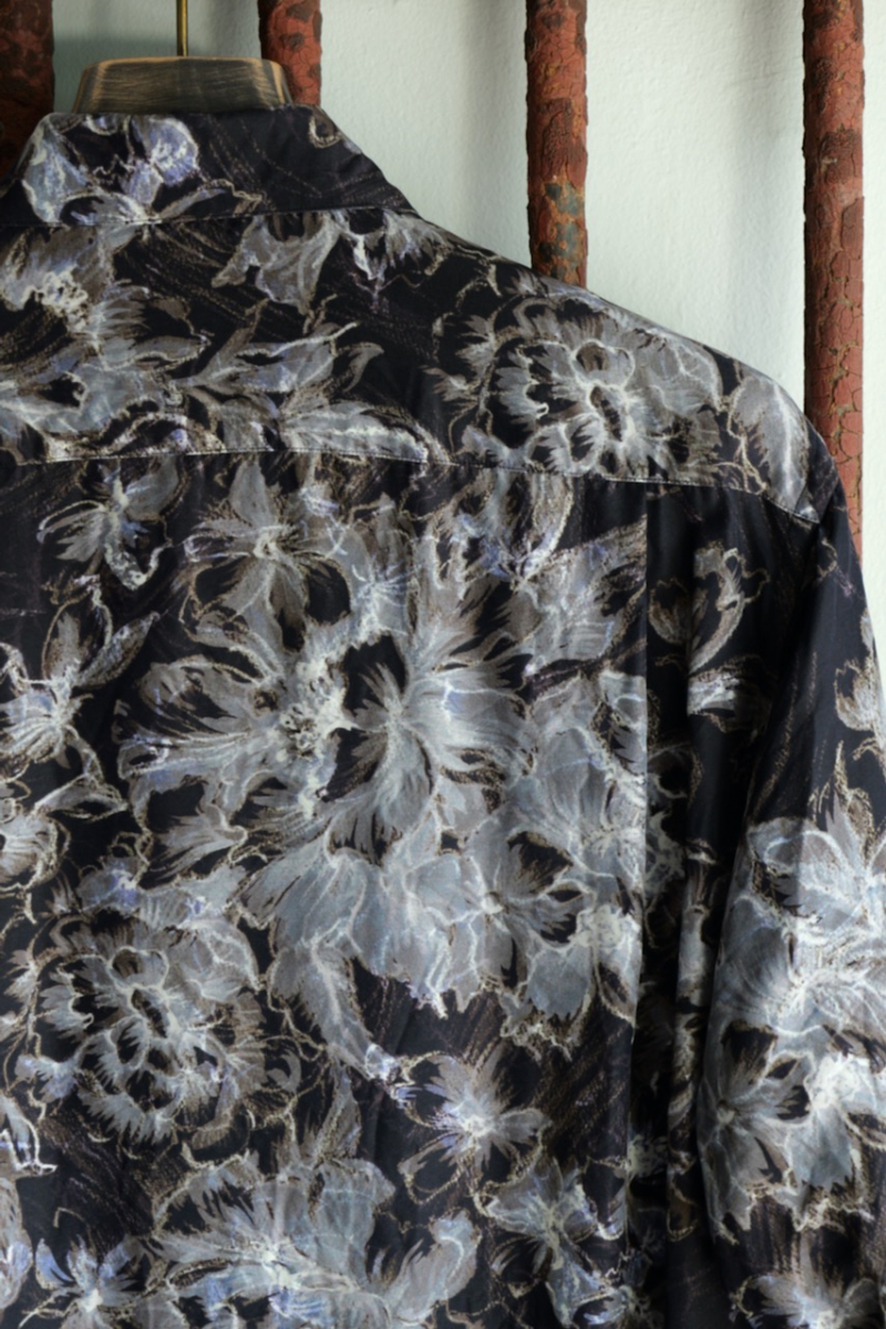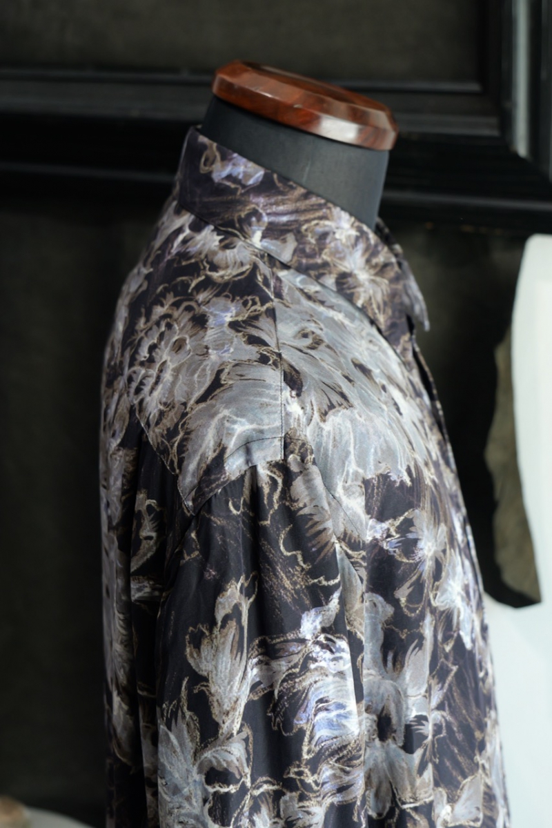 Regular Collar Shirt Flower Print Silk Cupla.