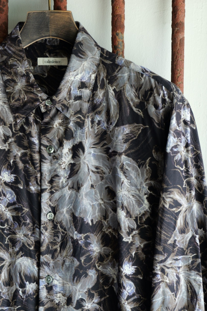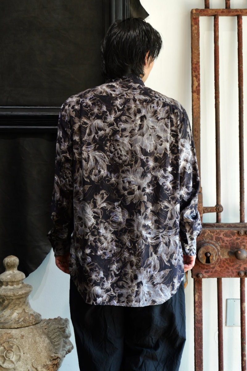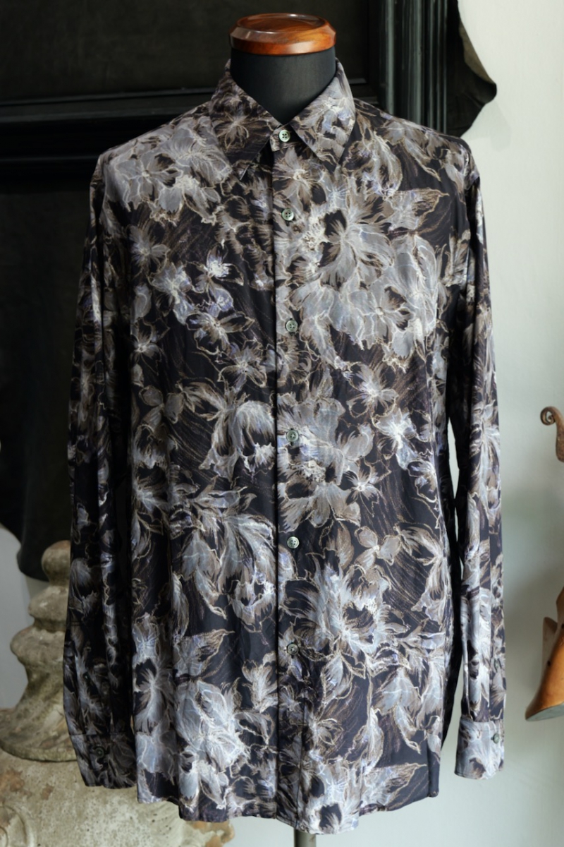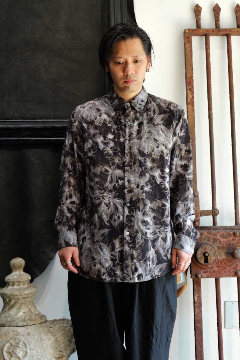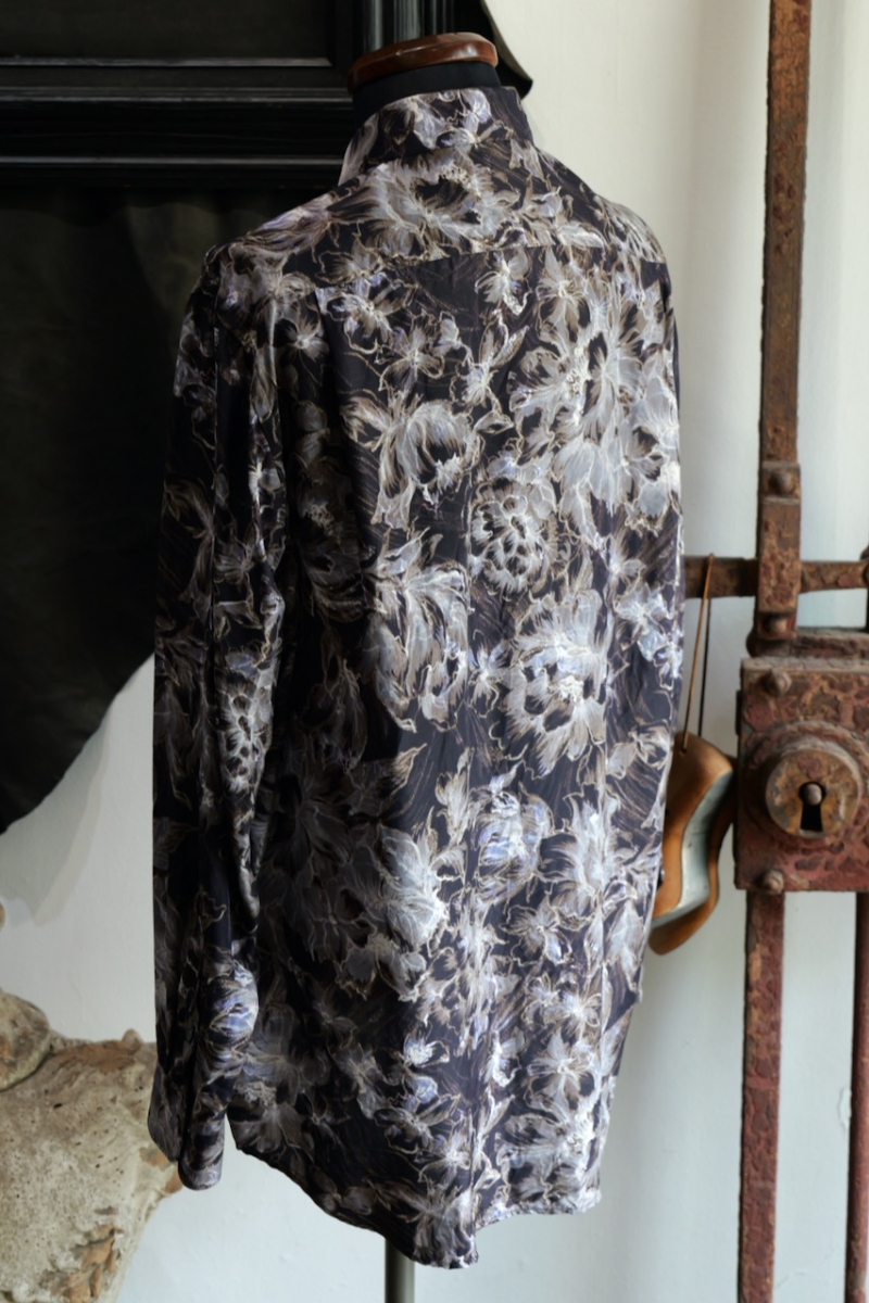 Regular Collar Shirt Flower Print Silk Cupla.