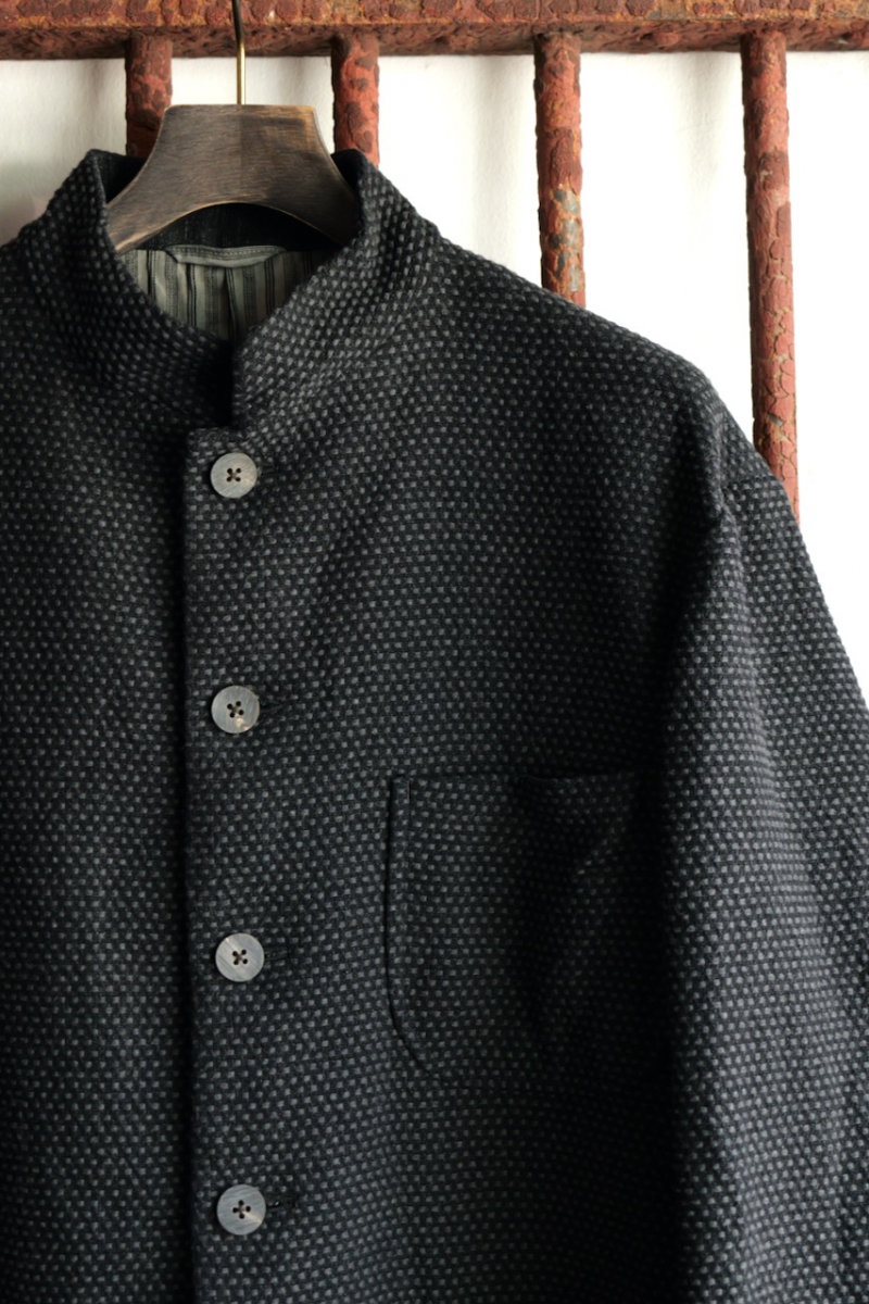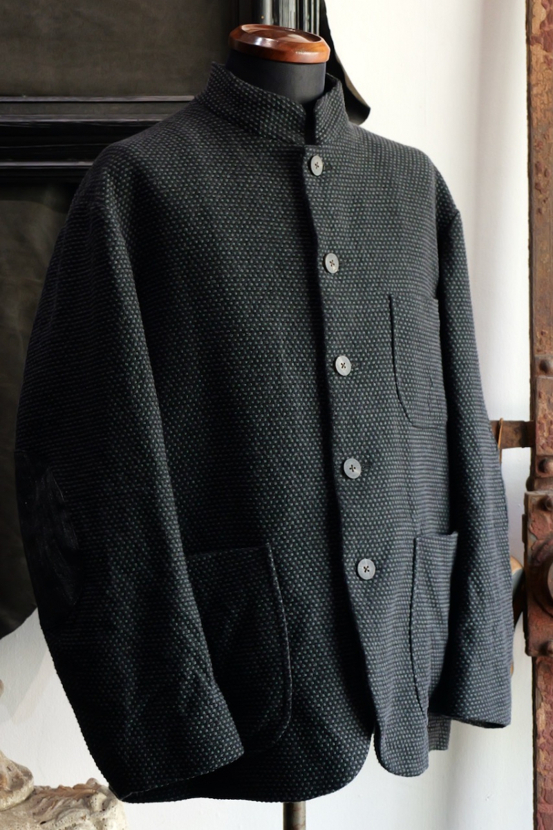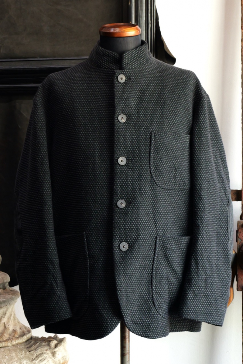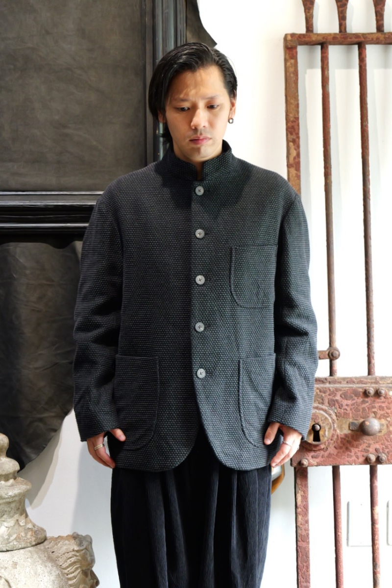 Stand Collar Jacket Cotton Sashiko Cloth.