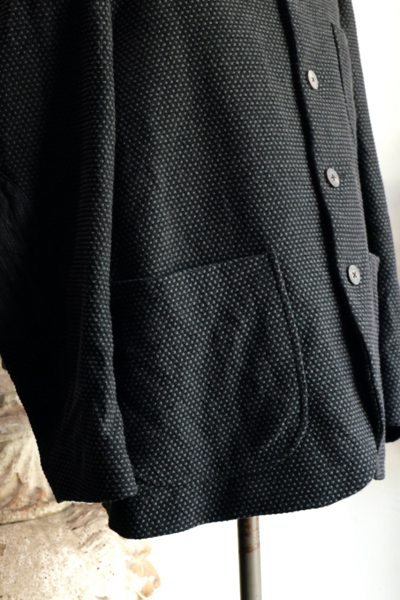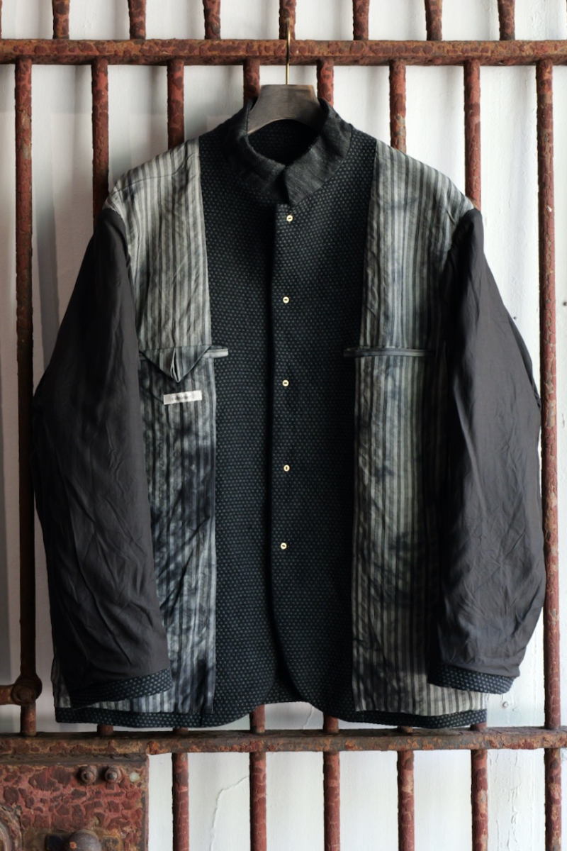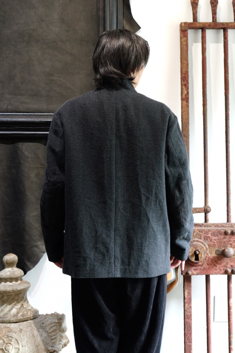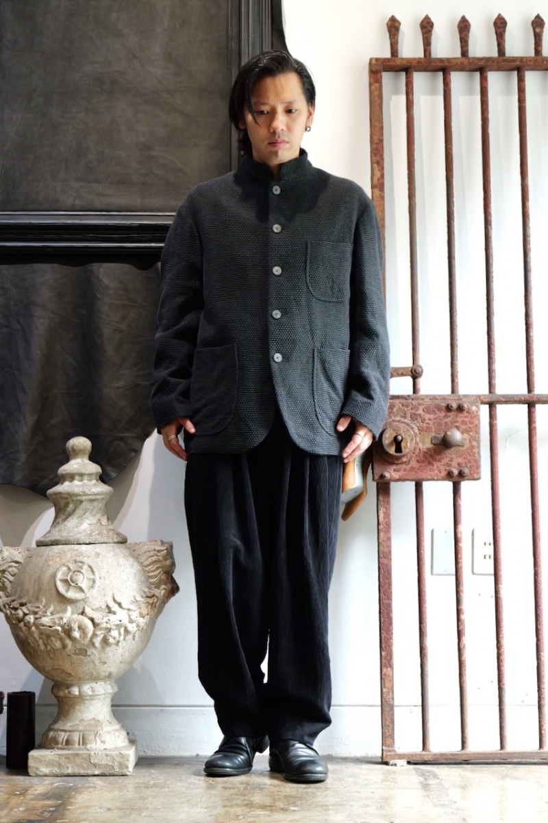 Stand Collar Jacket Cotton Sashiko Cloth.