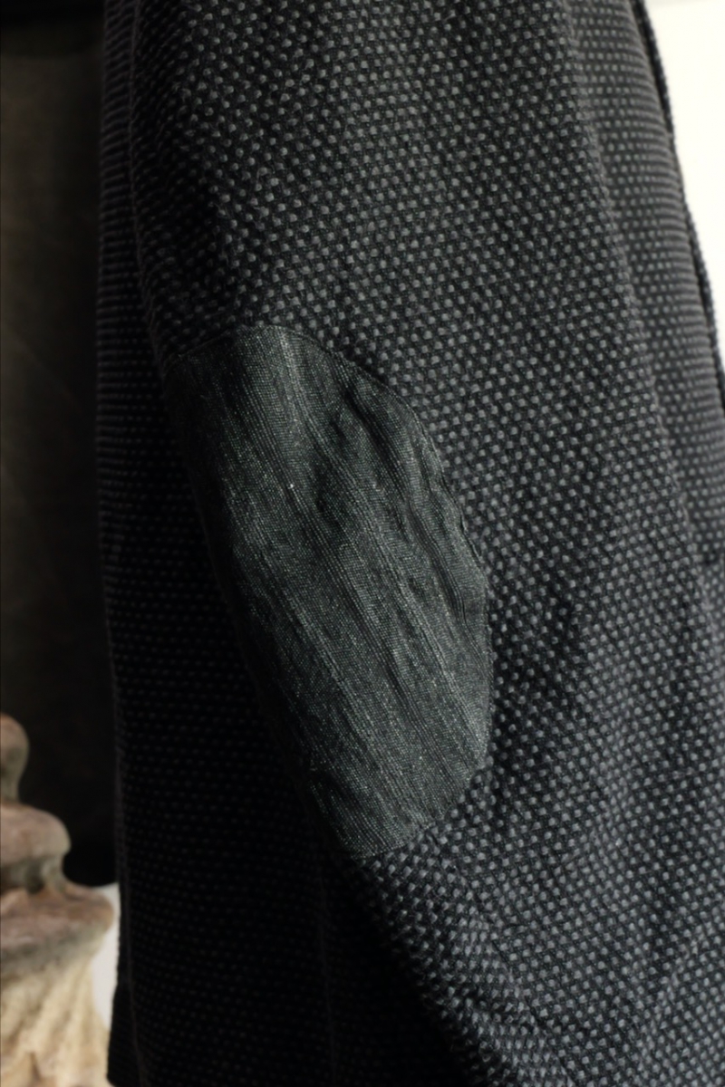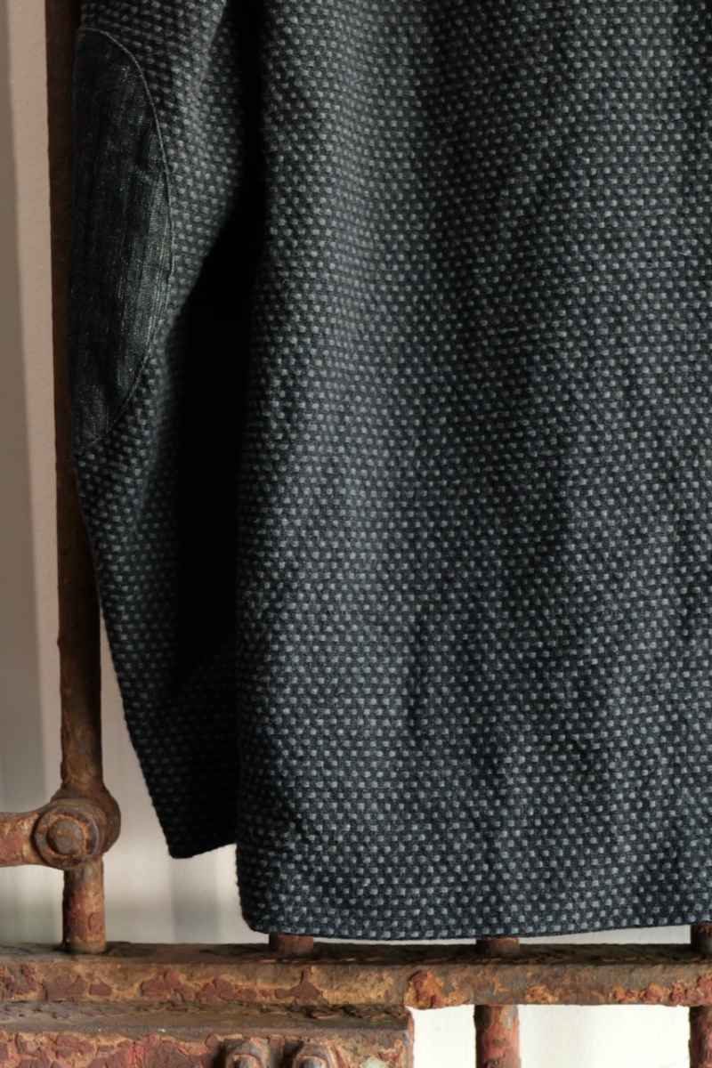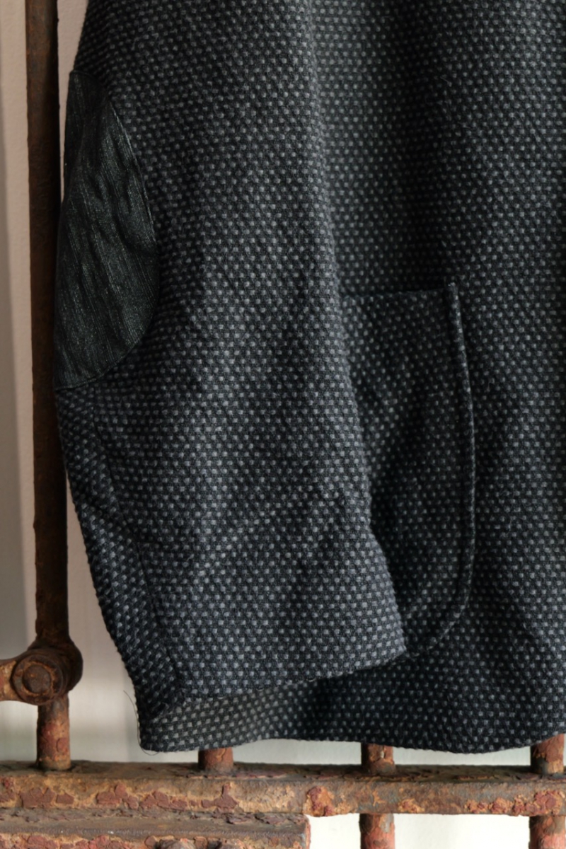あえてこの刺子の布で作成し、肘当てと衿裏を別布で切り替えました。