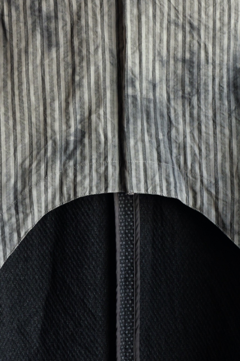 ・身頃の裏地には経糸のベースを75Dレーヨン糸、ドビーストライプ部分を80/2コットン糸で整経、